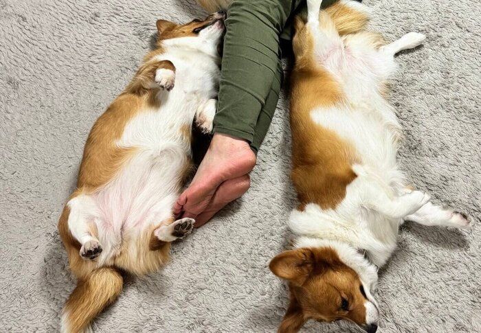「コーギーがたくさん落ちている家」に注目!5匹のわんこに囲まれて眠る至福の瞬間に5.2万人がほっこり&羨望の眼差し