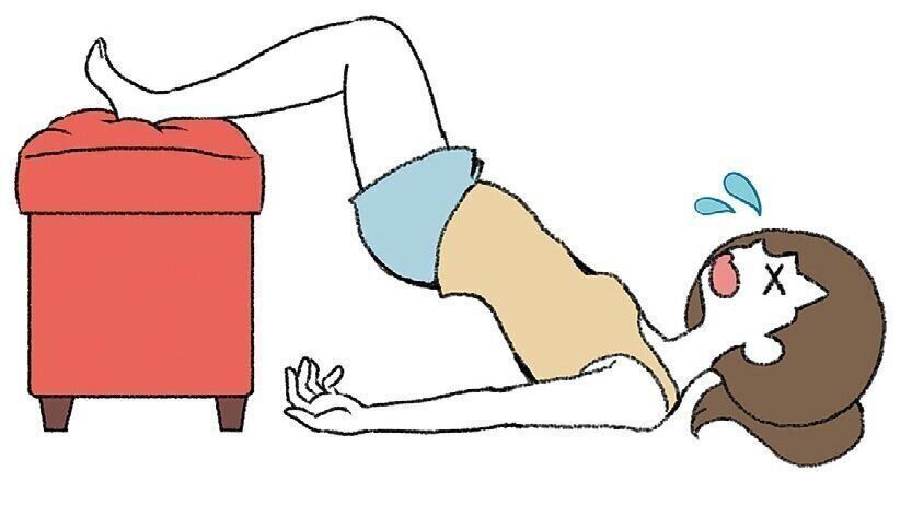 ベッドやソファを足場にすると、バランスが取りづらく、よけいな所に負荷がかかりがち。