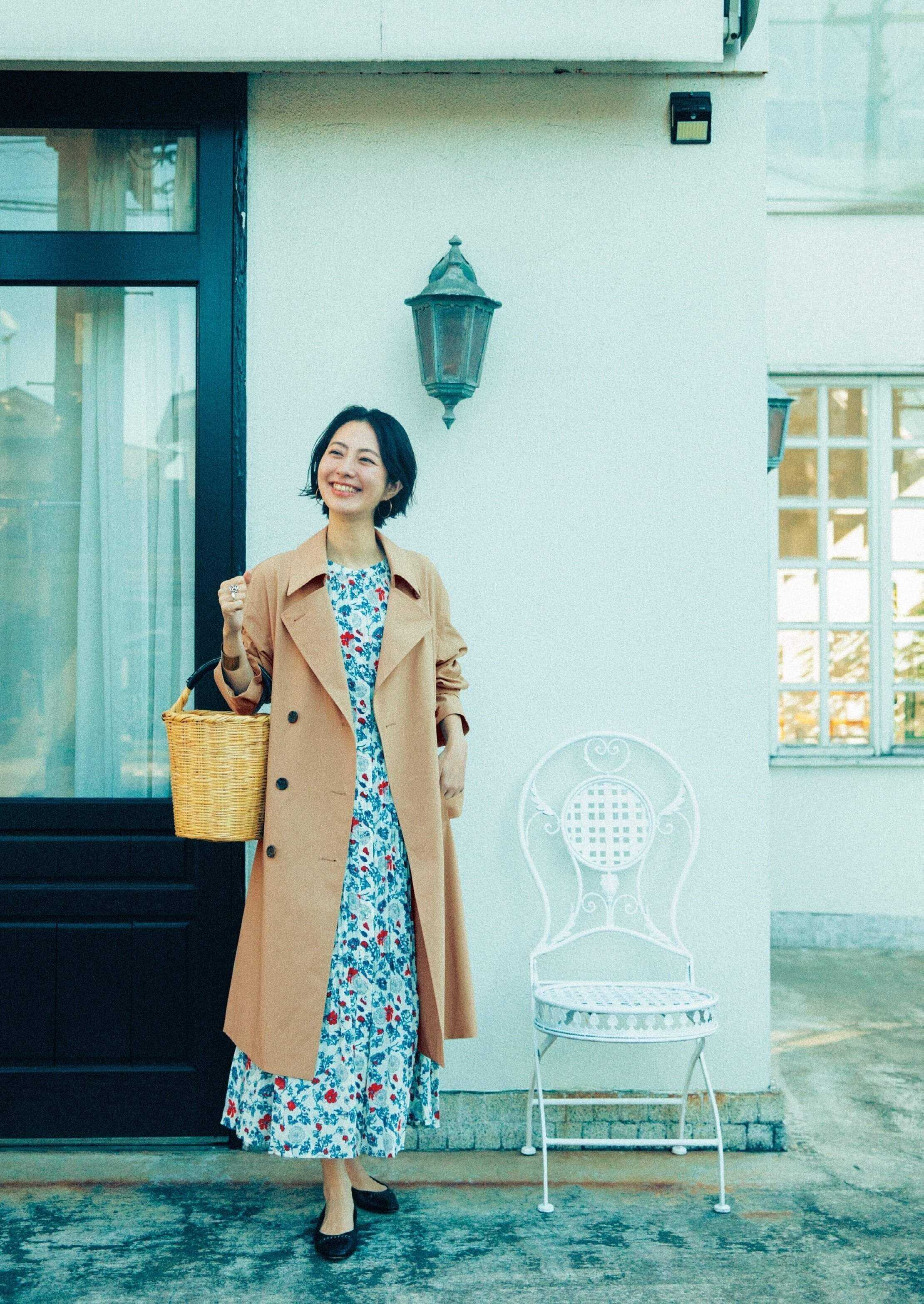季節の変わり目にあると便利なアウターとして、林さんがこの春イチオシなのがオーバーサイズのトレンチ。「ゆったりとしたシルエットととろみのある生地感で40代の私たちにも着こなしやすいデザイン。トレンチというベーシックなアイテムなのに、オーバーサイズなのがいい!中にインナーダウンを重ねれば冬の終わりから着られるし、重ね着しやすい1枚です」。