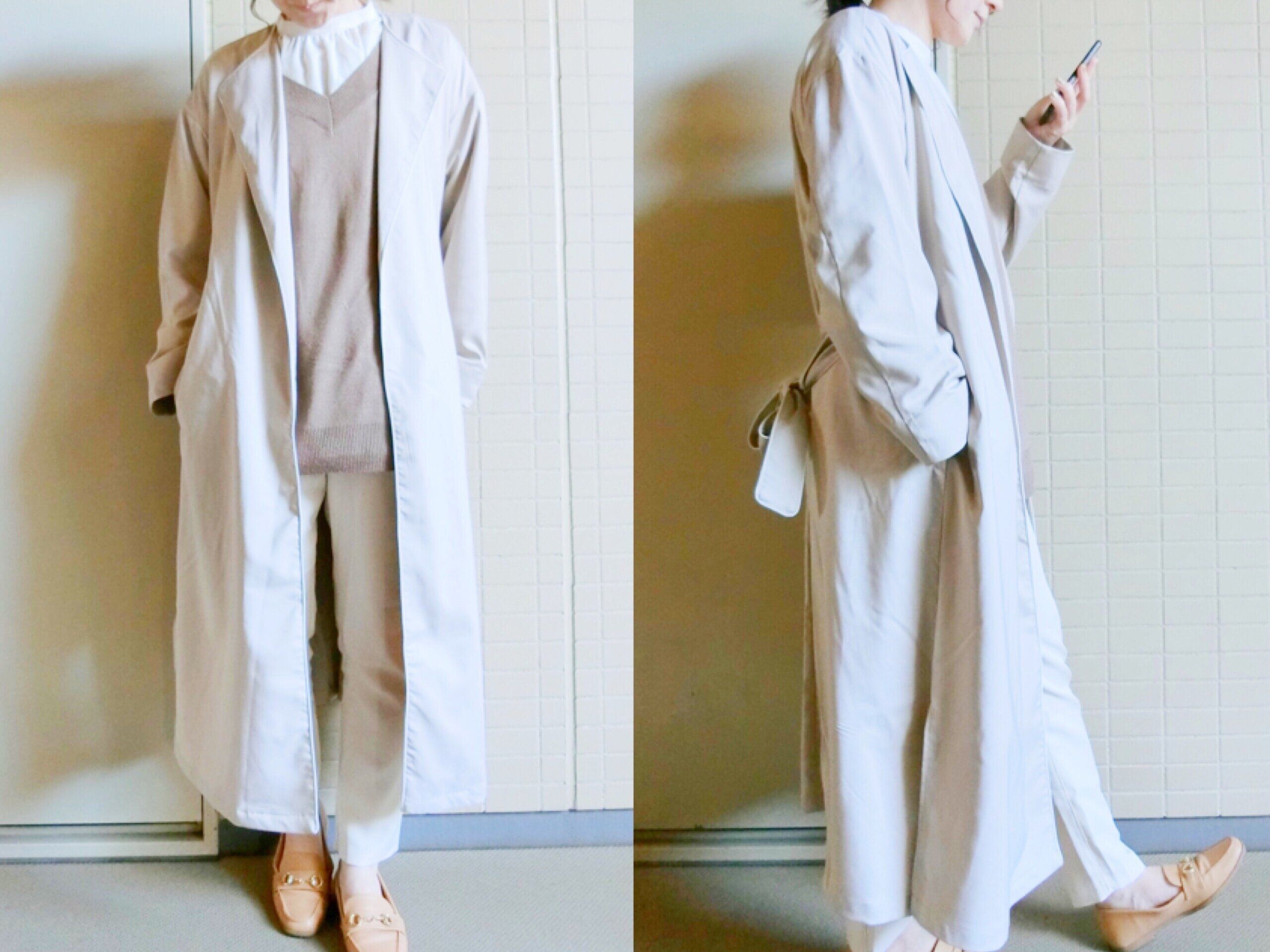 ボタンなどはついていないガウンコートです。さらっと羽織れる春におすすめの1枚!