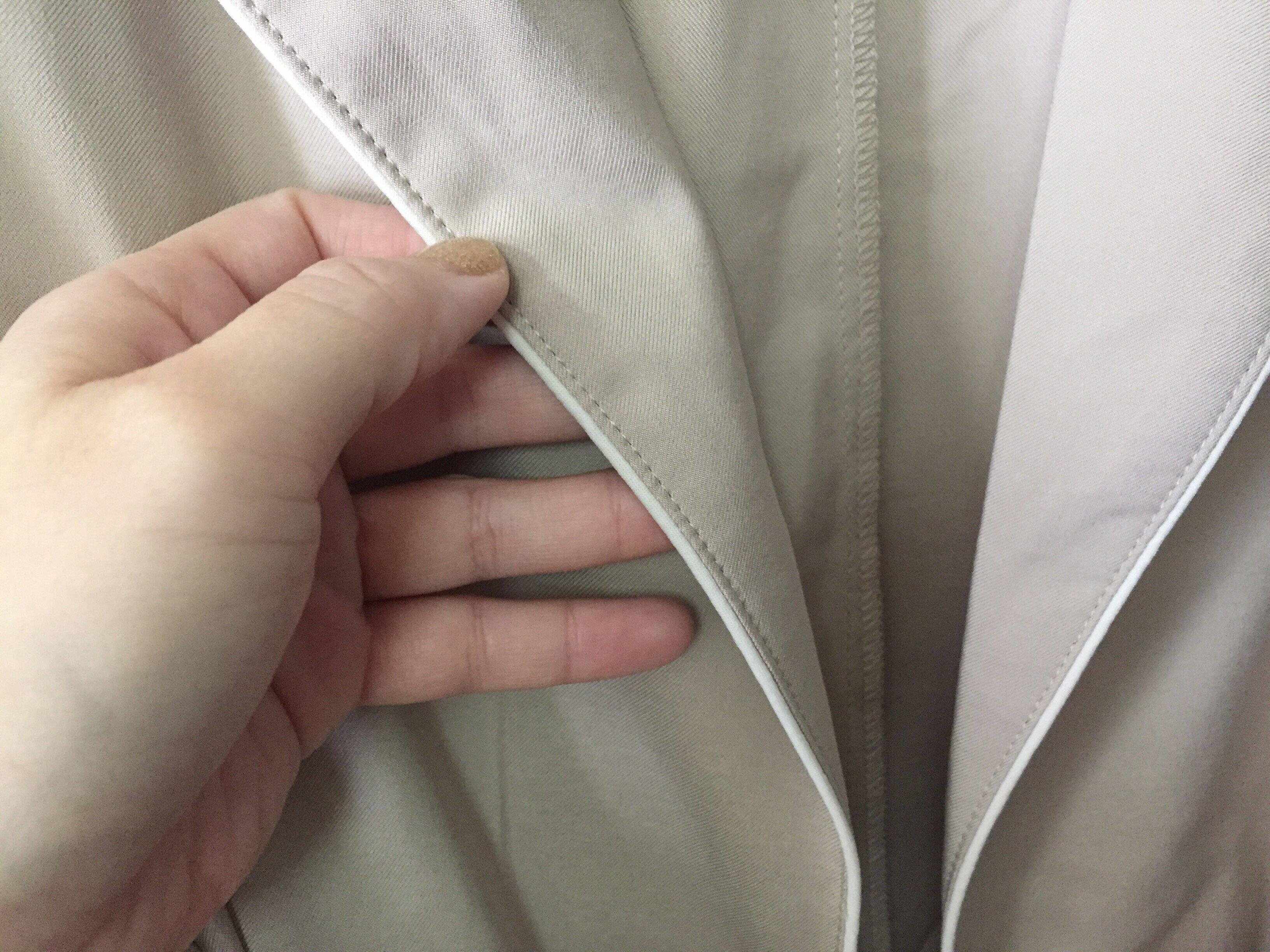 このコートのかわいいポイントはパイピングが施されているデザイン。