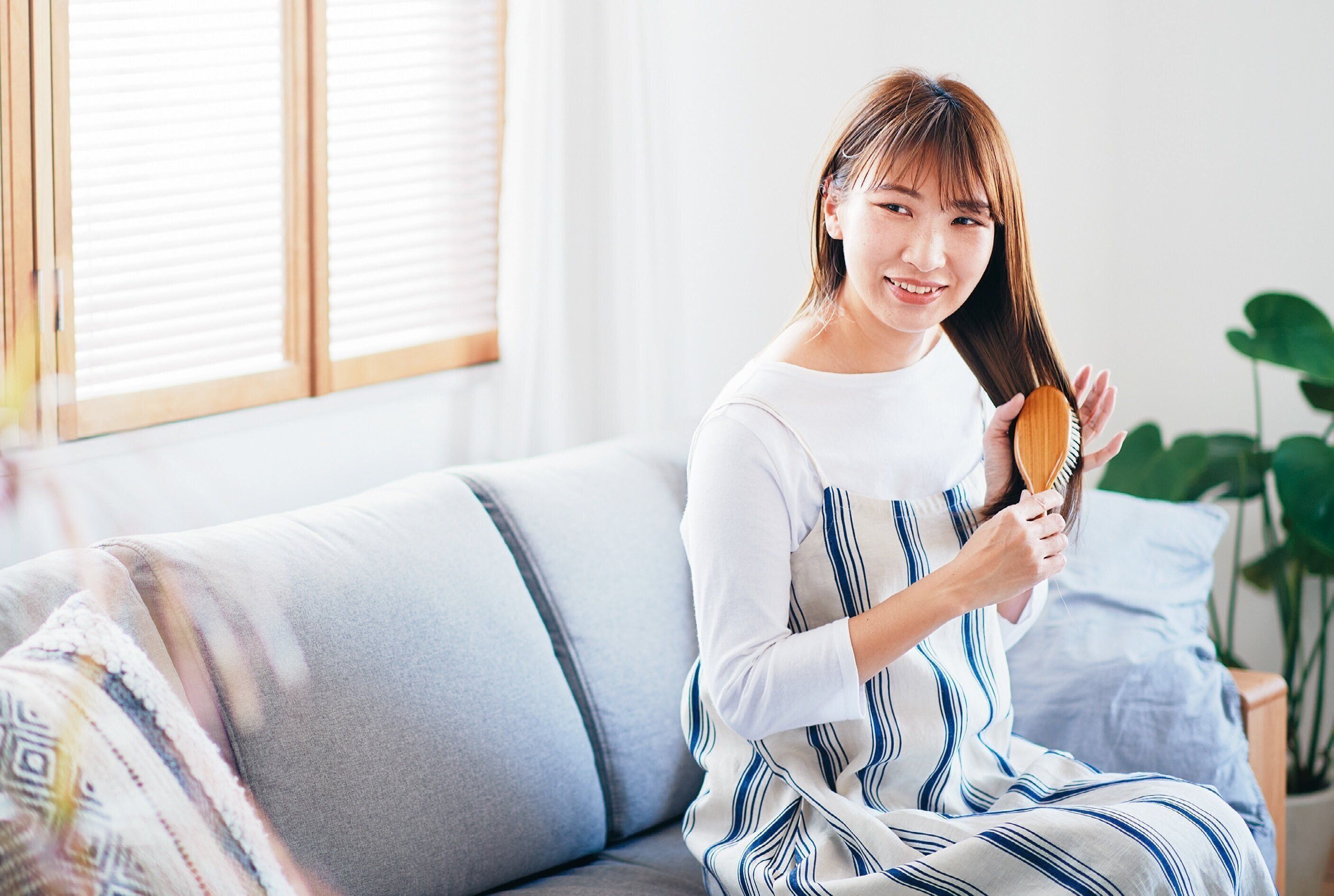 髪と頭皮に刺激を与えすぎない、質のいいシャンプー&コンディショナーを選ぶようにして。保湿力が高い育毛剤を活用し、頭皮マッサージで血行をよくすることも大切です。食事も、髪の材料となるたんぱく質とミネラルをしっかりとりましょう。