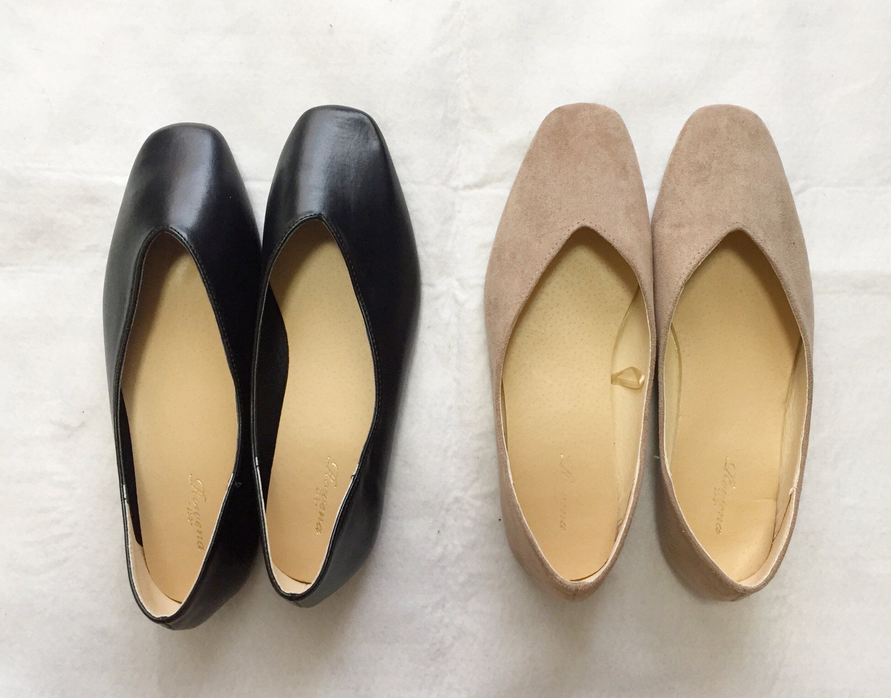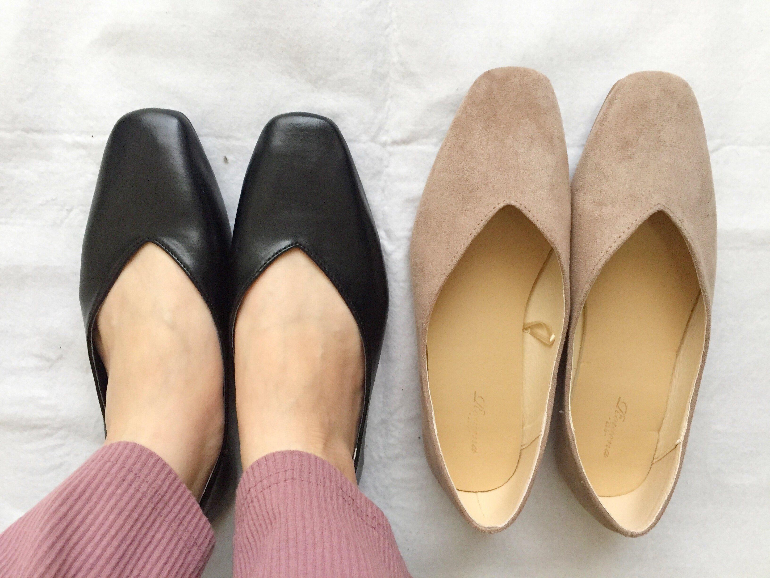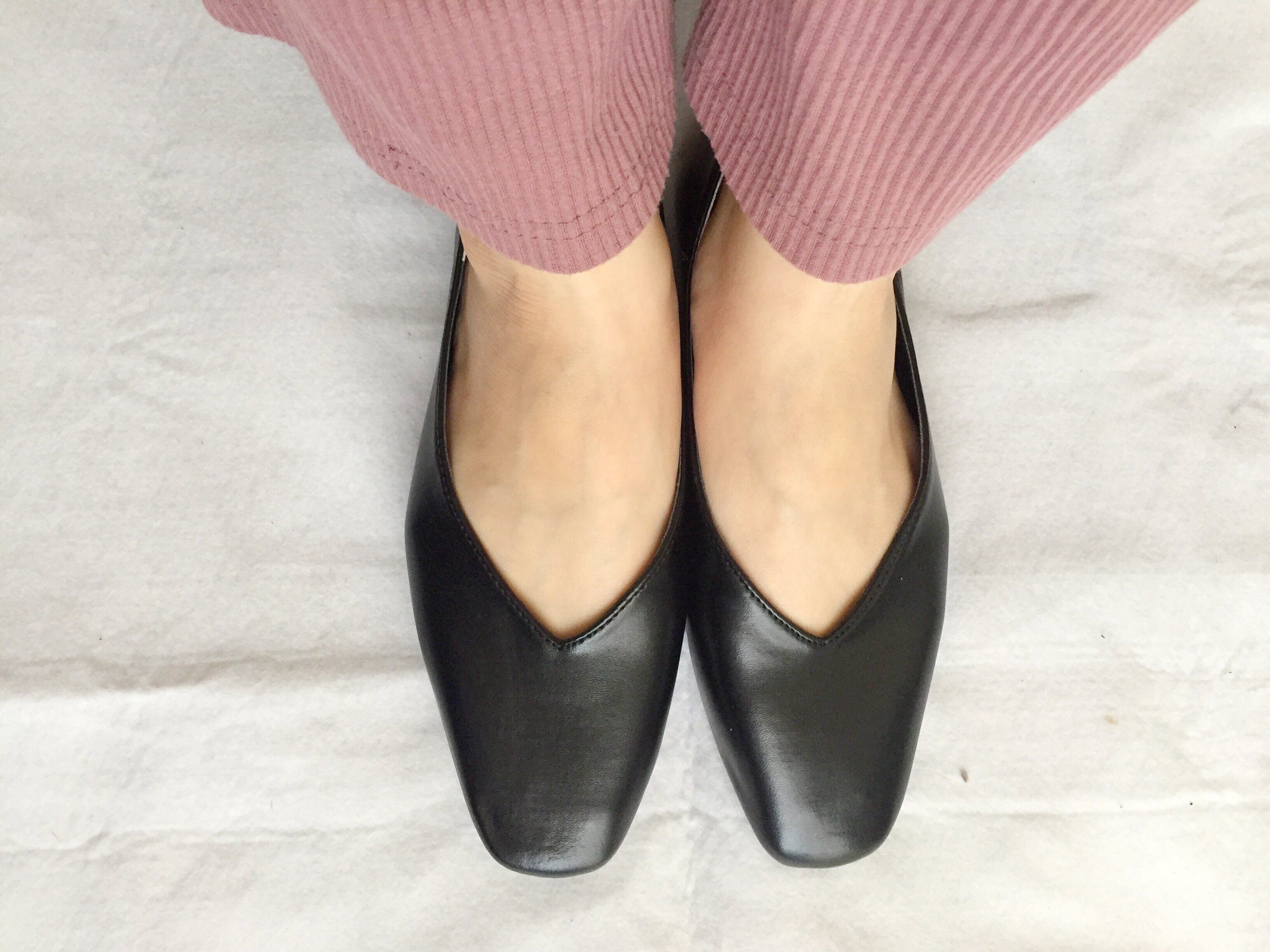 履き口がVカットになっていていることで足がきれいに見えます。程よいスクエアトゥのデザインは甲深なので足にフィットしやすくつま先が痛くなりにくいですし、トレンドを抑えていてファッション性もとても高いです。かかとを踏んでバブーシュのように履くのも可能。
