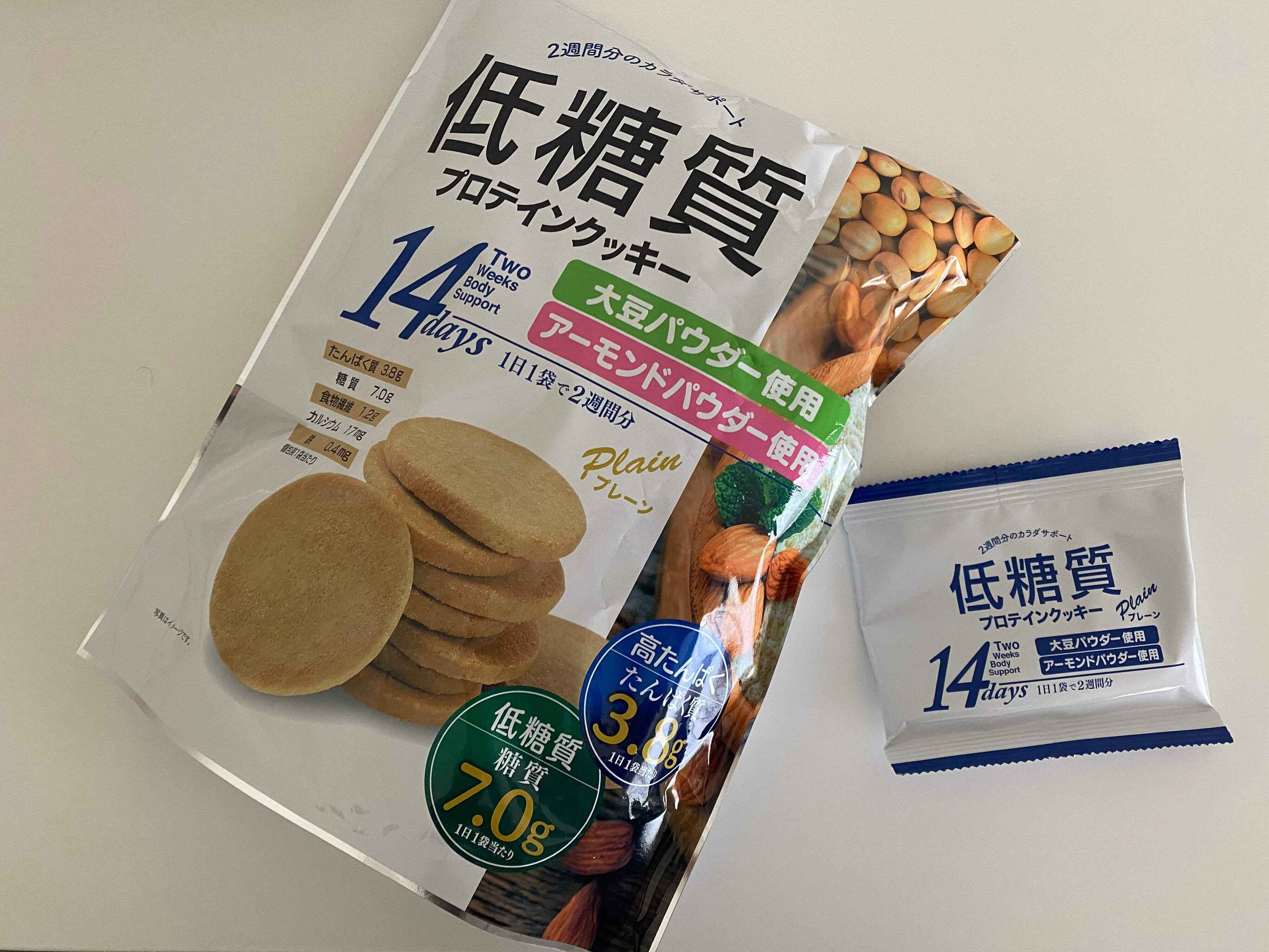 大豆パウダーとアーモンドパウダー使用で、一袋89kcalと低カロリーかつ、筋肉作りには欠かせないプロテインも豊富なクッキー。