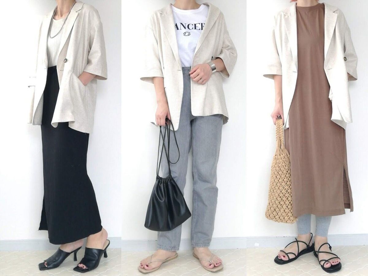 夏の羽織りとして、今年大注目なのが「半袖ジャケット」。ジャケットなのできちんと感もありつつ、半袖が抜け感を演出してくれる優秀アイテムなんです。