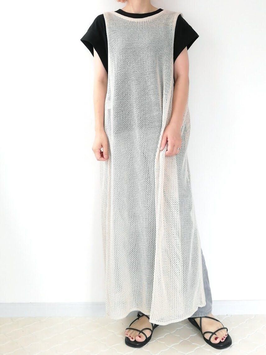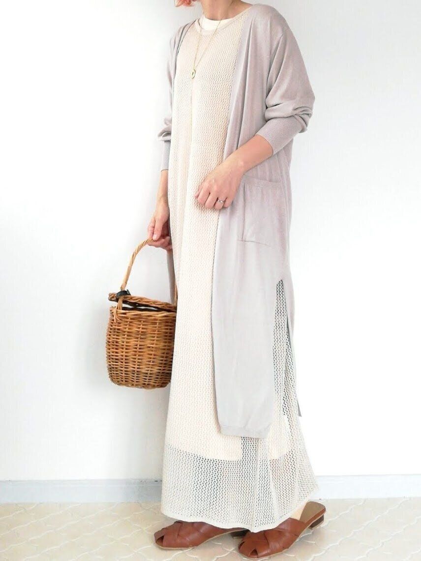 編みこまれたメッシュ素材と、長めのマキシ丈が今っぽいと評判なんです。
