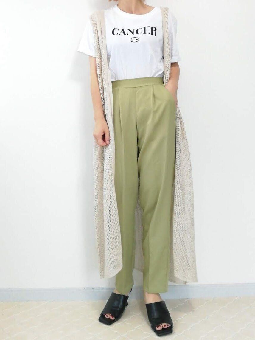 ロゴT×テーパードパンツのマニッシュなコーデにプラス。