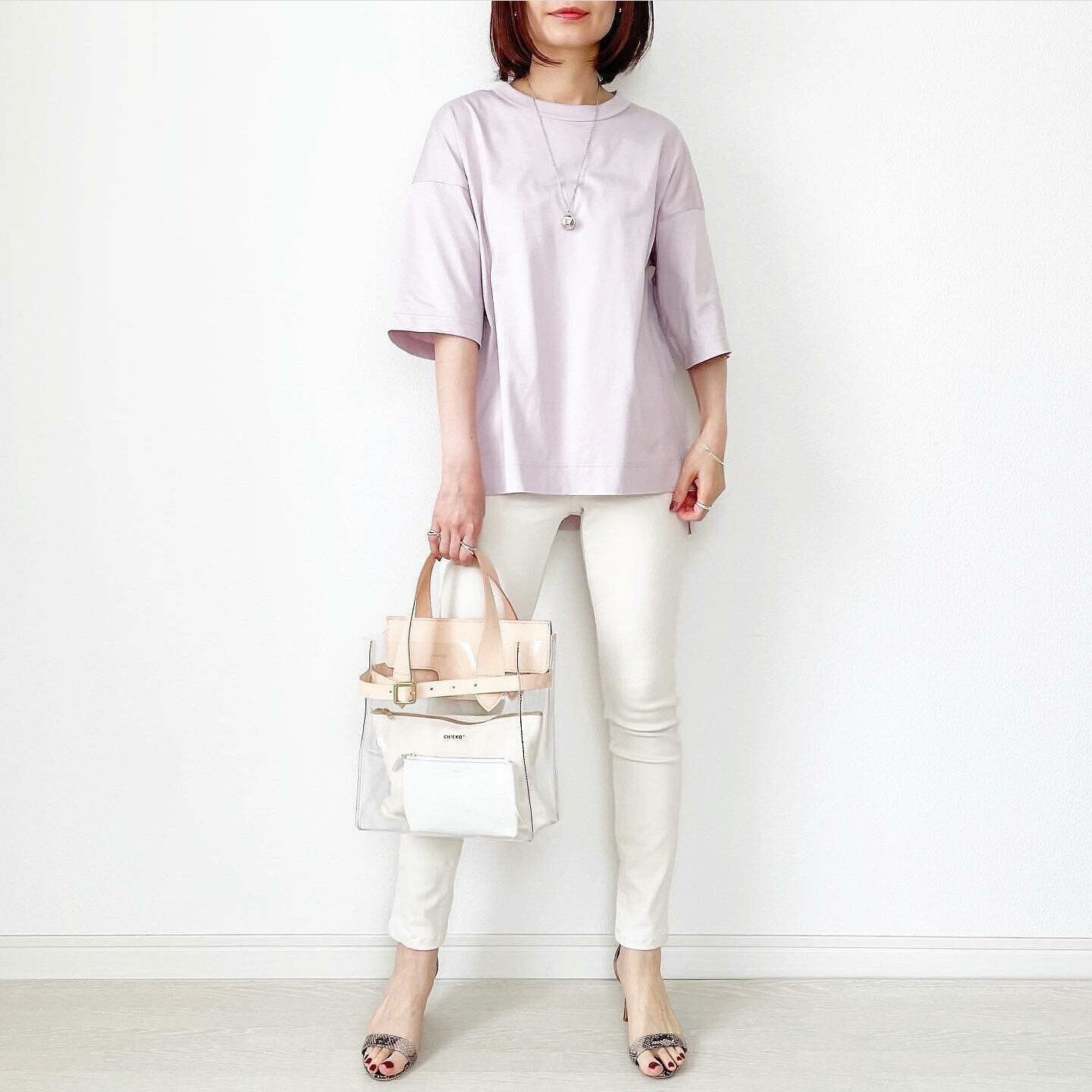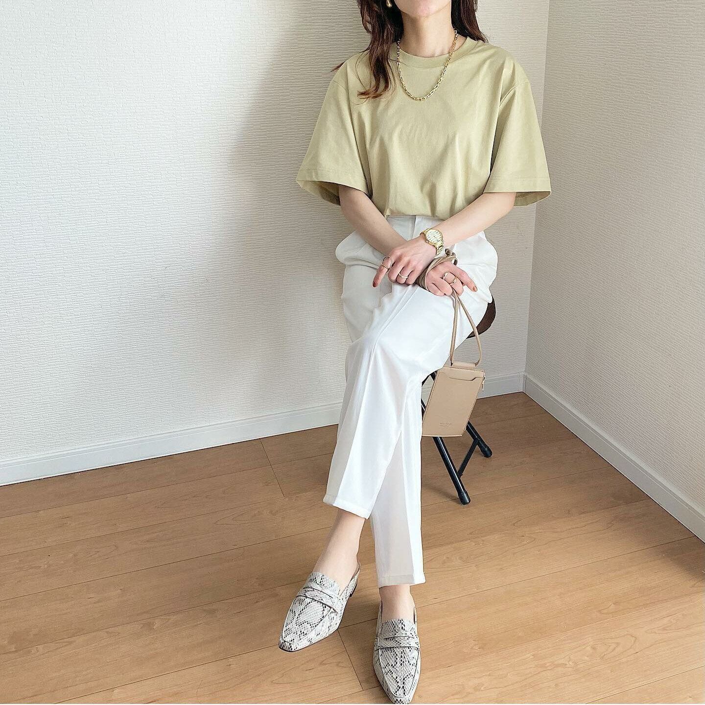 オフィスにもTシャツを着ていきたいなら、きれいめコーデにもマッチする「スムースコットンフレンチスリーブT」をひとつ。二の腕をさりげなくカバーしてくれるフレンチスリーブで、Tシャツ1枚を着るときの安心感があります。長めの着丈なので、ウエストインするときも余裕があり◎。身体のラインをきれいにカバーできる優秀Tシャツです。