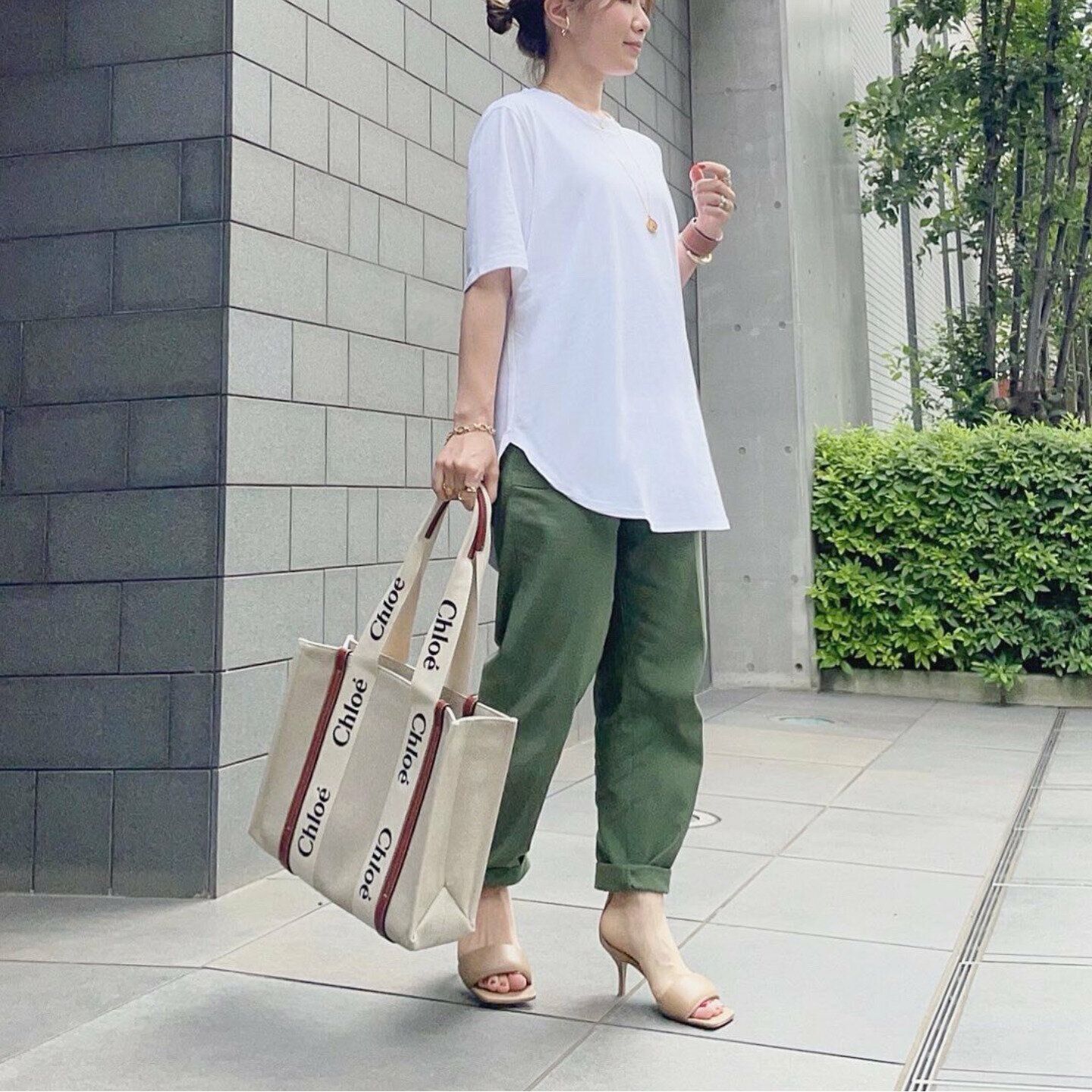 今年は、トップスをルーズにウエストアウトするスタイルをよく見かけますね。長いトップスを身につけると、バランスがとりにくく感じるなら、サイドにスリットやラウンドのカットが入ったタイプを選ぶと◎。着丈の長さも気にならずに、キレイにウエストアウトを着こなせます。「スムースコットンラウンドヘムTシャツ」は、きれいめな素材感でクリーンに着こなせるのが自慢!