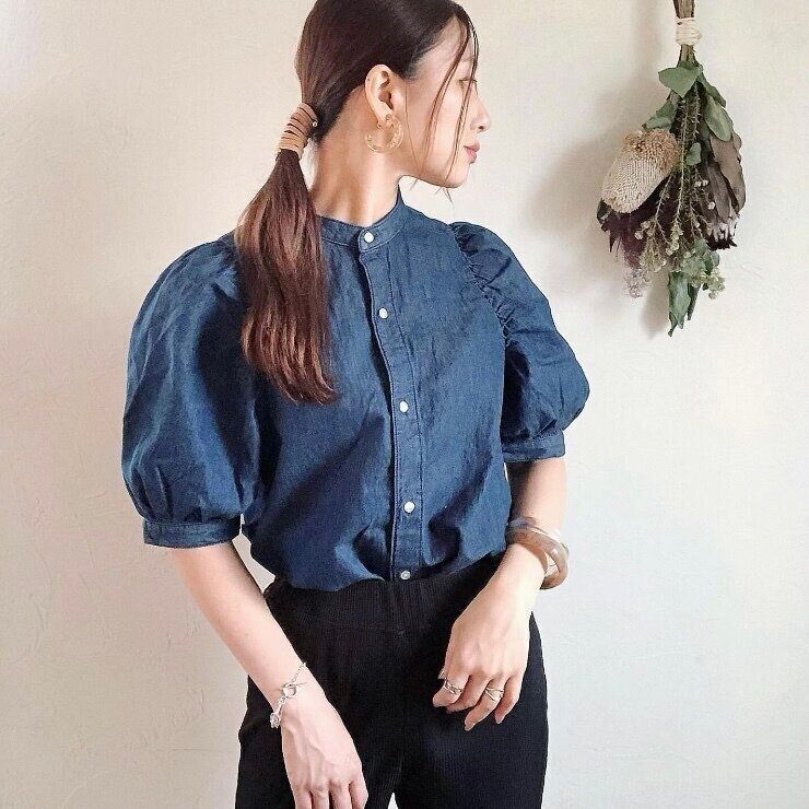 デニムシャツもボリュームスリーブが今っぽい!