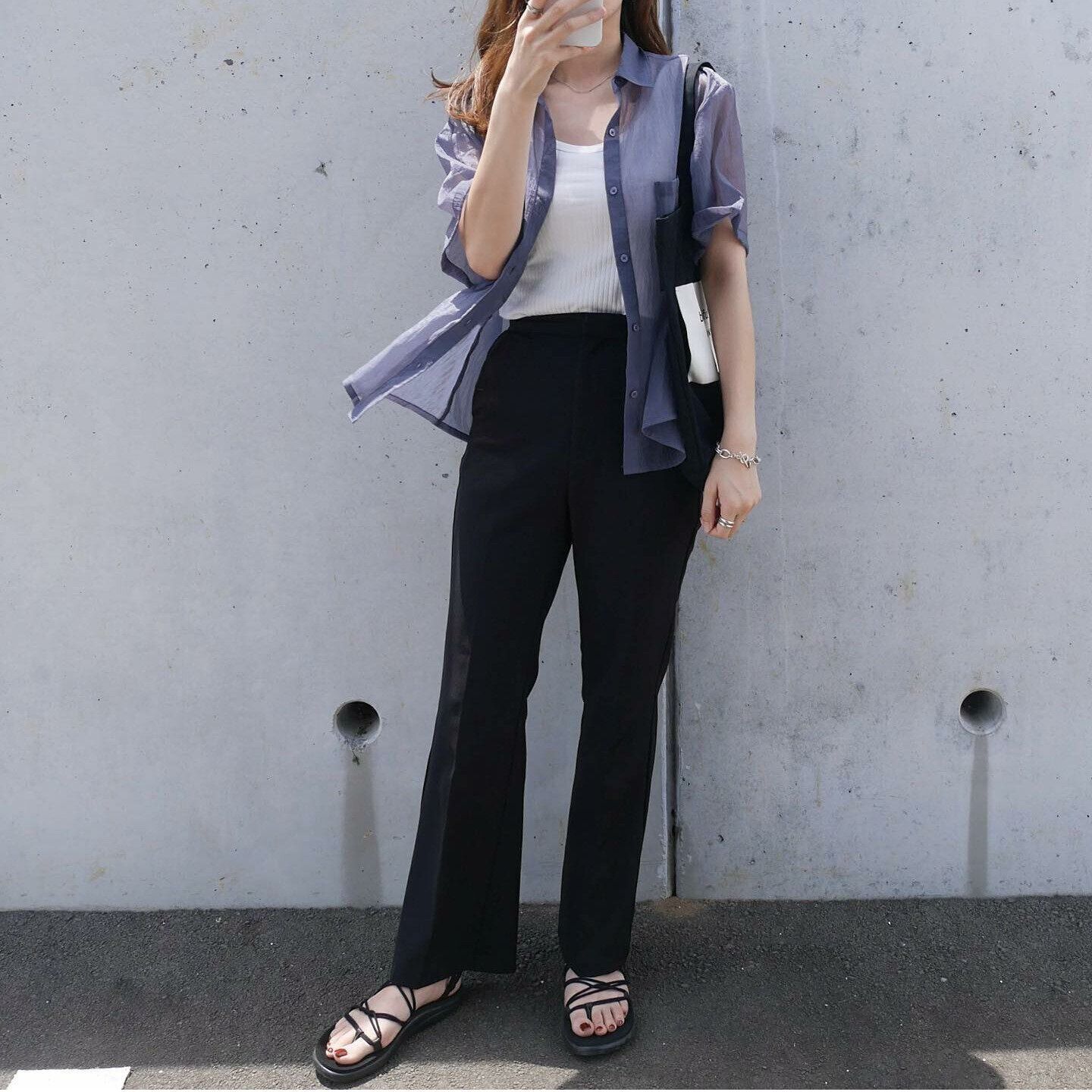 この夏は、シアーなシャツが豊富ですよね。肌を直接露出しないですむので、大人でも身に着けやすくて便利。GUの「シアーオーバーサイズシャツ/1,690円」は、5分袖で二の腕部分を丸ごと隠してくれるので体系カバーにも一役買ってくれます。