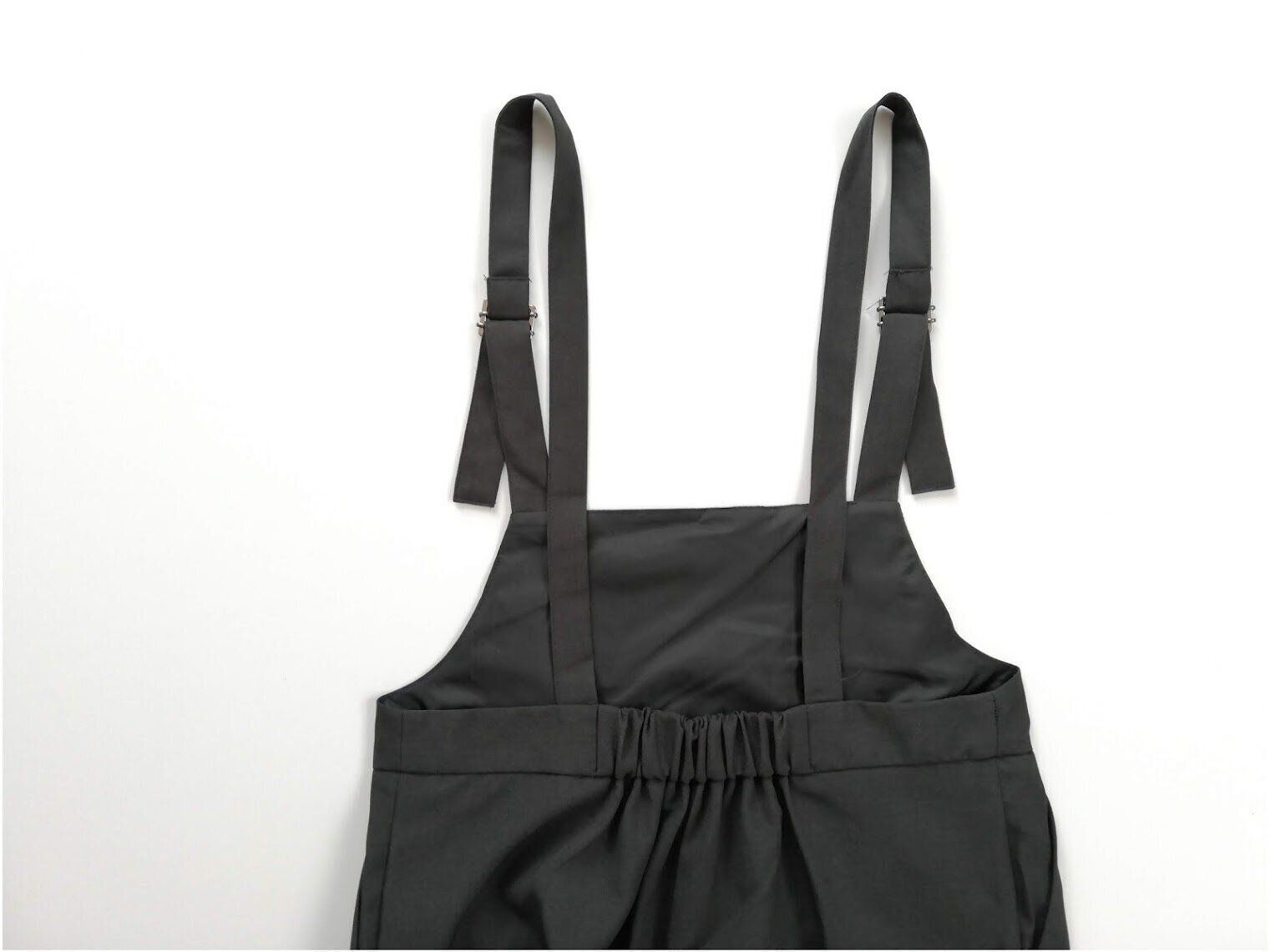 胸当て部分が低めなので、いわゆる”オーバーオール”感がなくスタイリッシュに着ることができます。タック入りでゆったりした腰回りなので、着ごこちも楽ちん!