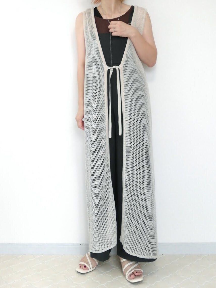 ロング丈のメッシュジレをプラス。一気にトレンドライクな雰囲気になれちゃいます!