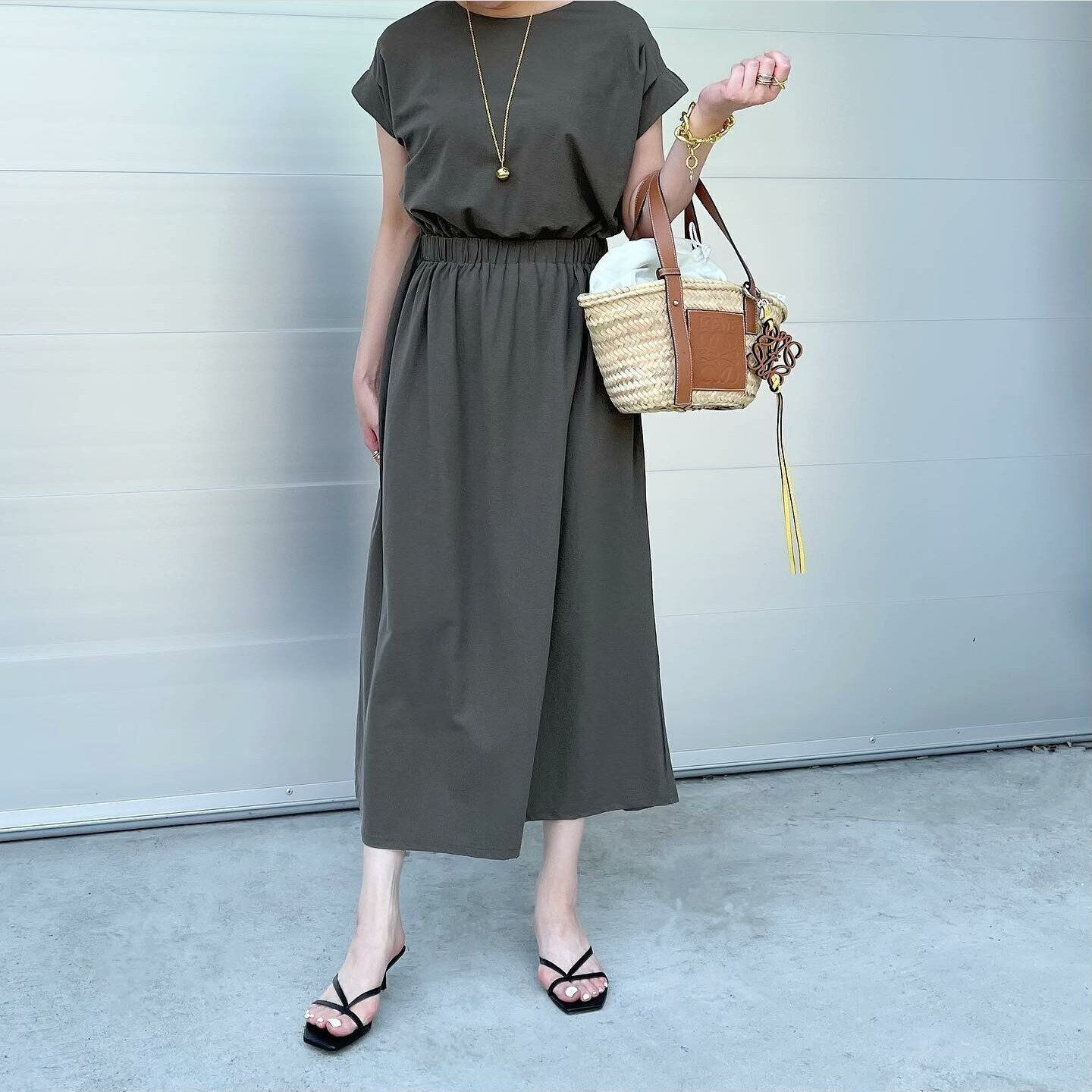 kuih(クイ)の「ウエストシャーリング切替ワンピース」は、カーキに近いブラウンで大人っぽい印象に。ウエストのシャーリング効果でメリハリ感のある着こなしを叶えてくれます。カーキブラウンの持つ、辛口で都会的な雰囲気が涼し気に見せてくれそう!肩や腕のラインを美しく見せるフレンチスリーブも絶妙です。