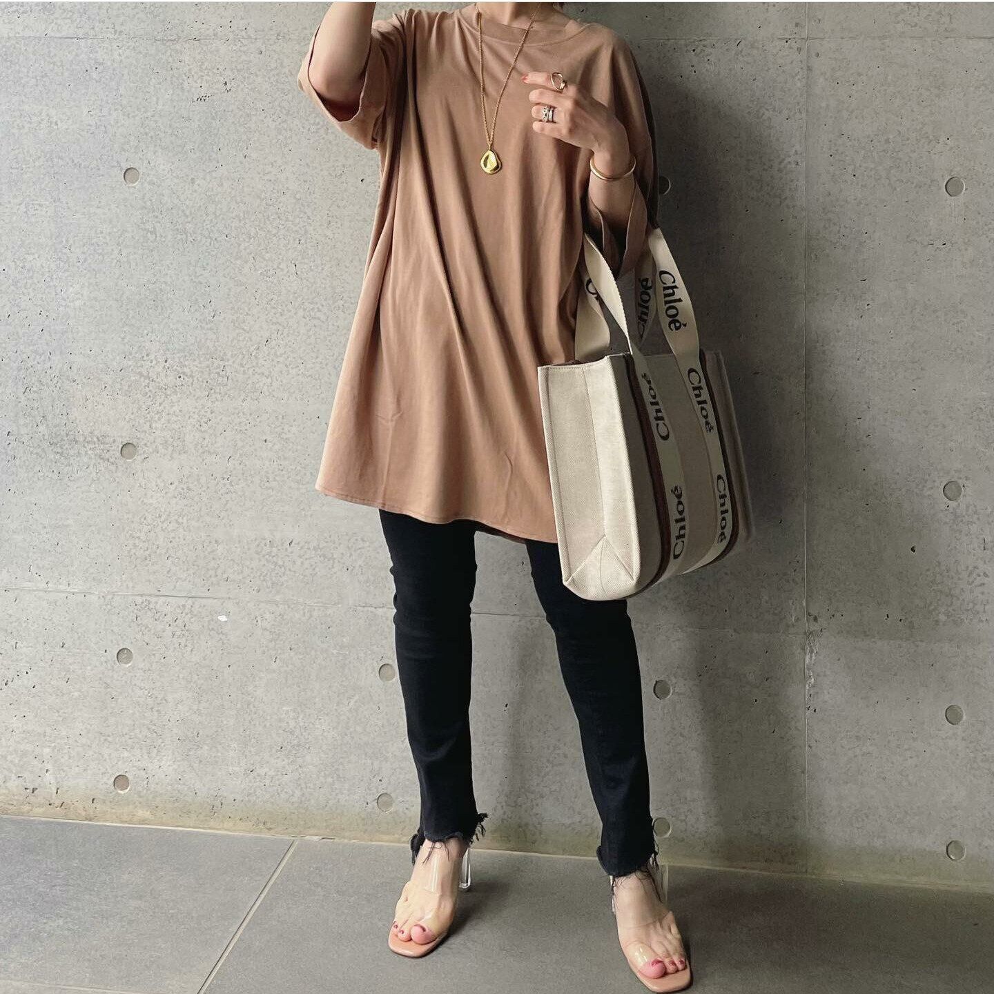 5.カジュアルにこなれるメンズライクなベージュTシャツ