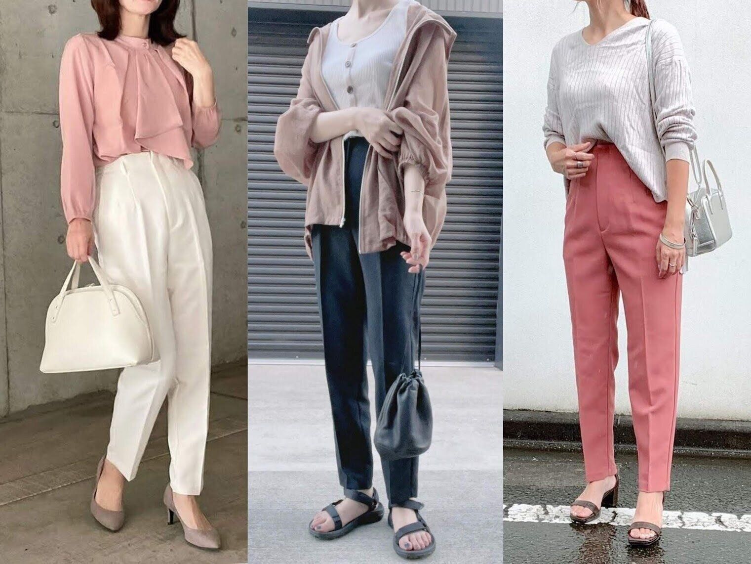 GUの「ハイウエストテーパードパンツ」、ピンクを使ったコーデ。