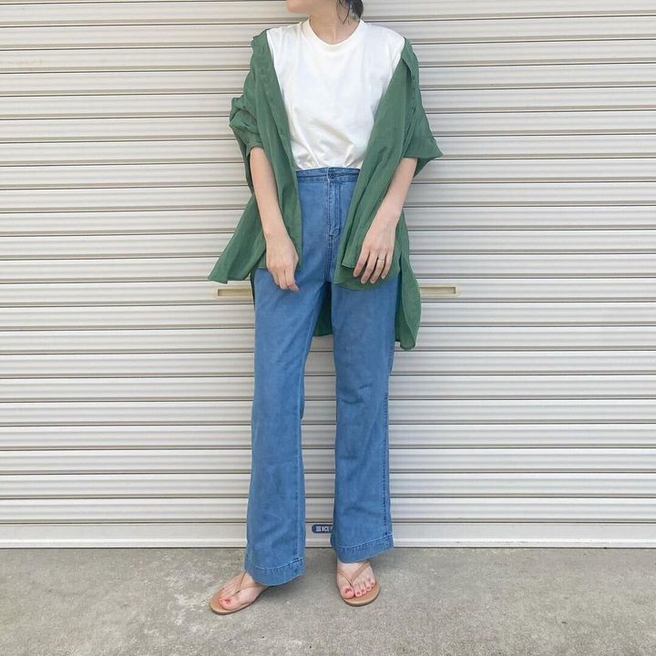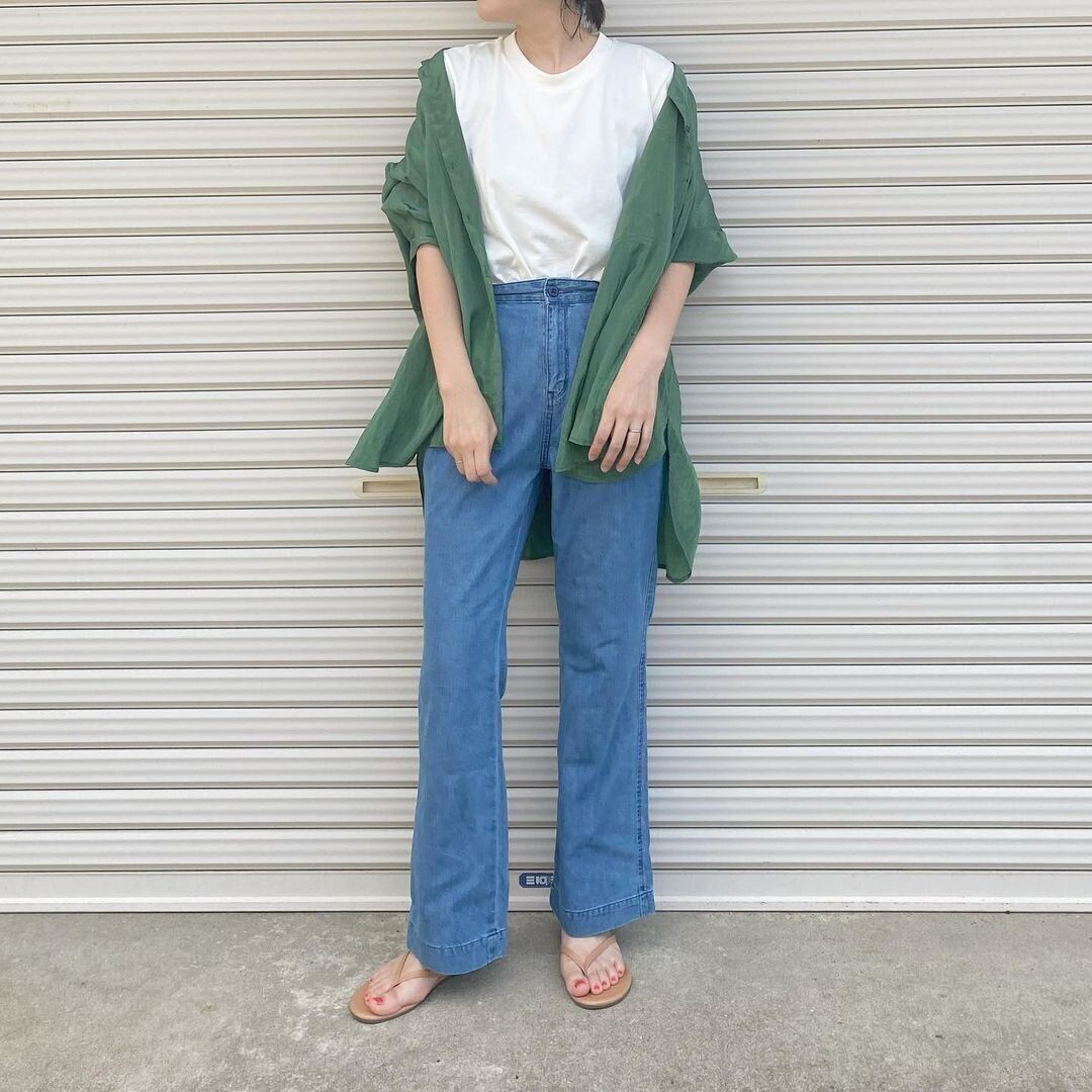 しまむらのフレアデニムは、usedのような色合いと控えめなフレアが高見え!オールシーズン活躍してくれるので、秋冬もまだまだ使えそうですね。