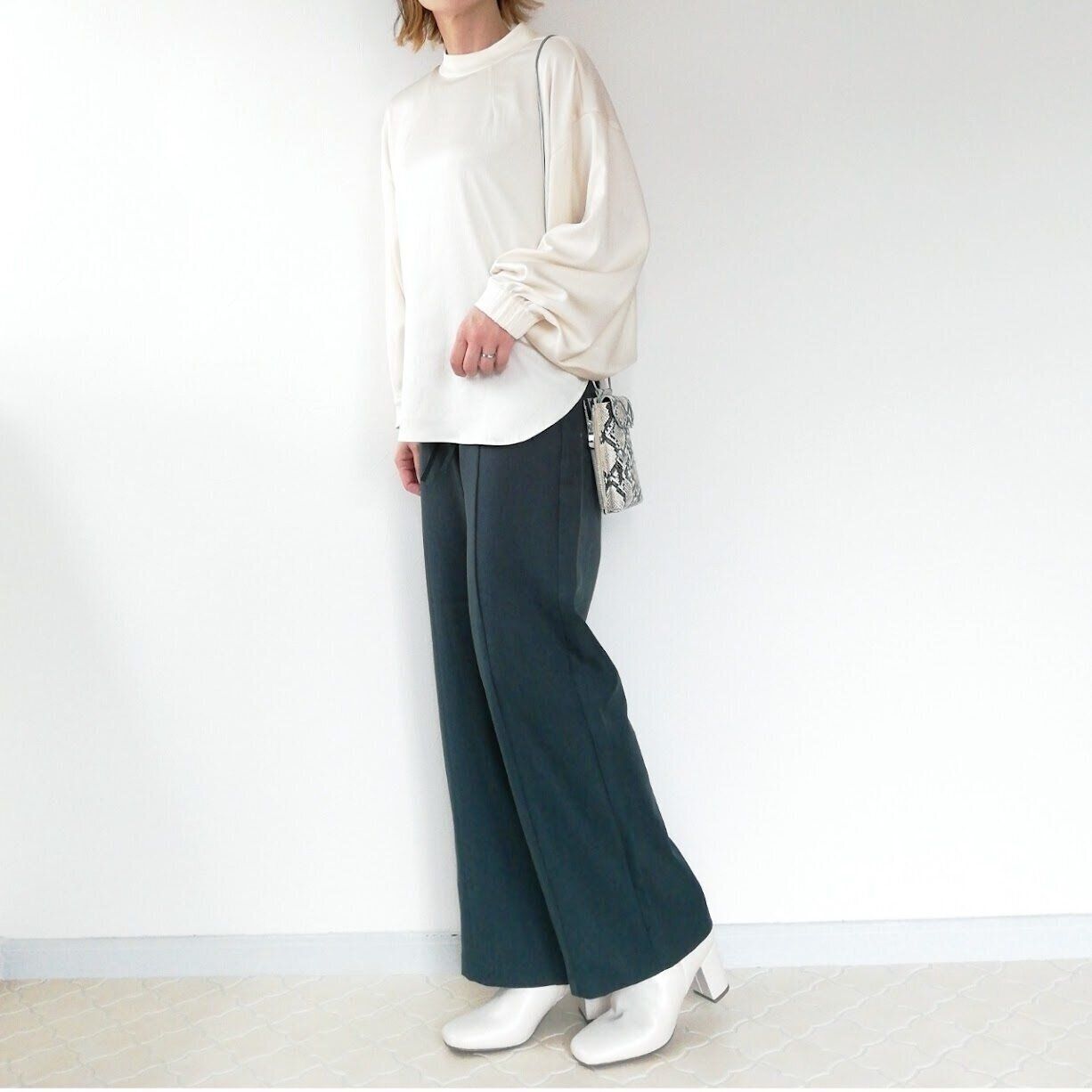 ツヤ感あるとろみブラウス&ホワイトブーツにチェンジ!