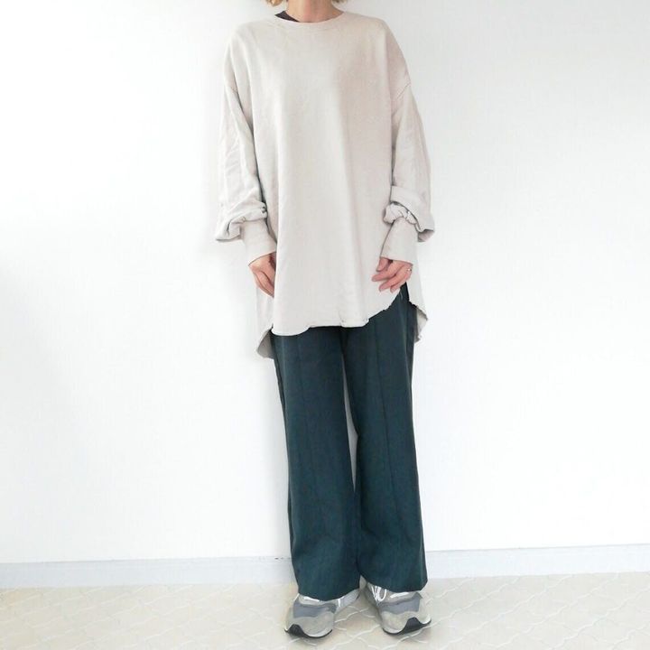 ビッグシルエットのスウェット&スニーカーのカジュアルなコーディネート。