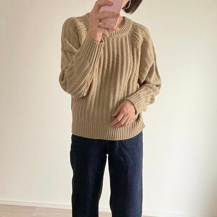 ざっくりとしたニットの風合いが秋気分を満たしてくれる「ローゲージ クルーネックセーター/3,990円」も必見!メンズライクなニットの網み目ですが、コンパクトなデザインで女性らしく着こませます。ゆったりとしたシルエット&ラグランスリーブで着ぶくれ感も回避できます。