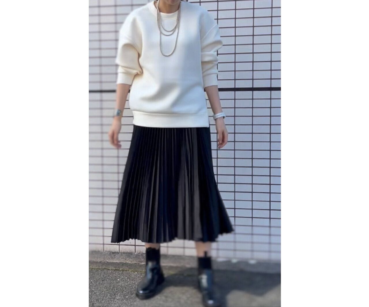 肉感のあるスウェット素材で着ると丸みのあるフォルムになります。袖の切り替えもポイントのひとつ。