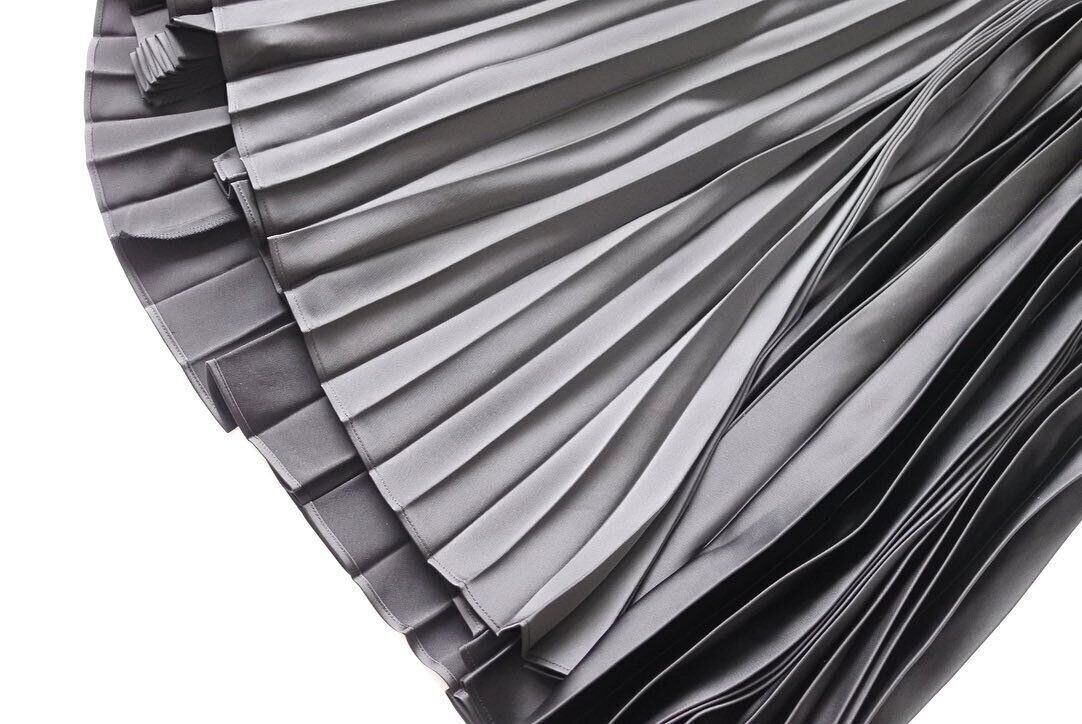上品な光沢が美しいサテンのスカート。裾がアシンメトリーになっているので動くと表情が変わり美しいフレアがでます。
