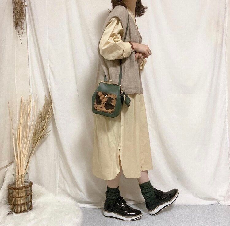 シャツワンピースのカラーとベストのカラーを同系色でそろえれば、失敗しないおしゃれなコーディネートが完成!重ね着初心者さんはぜひ参考にしてほしいコーディネート。