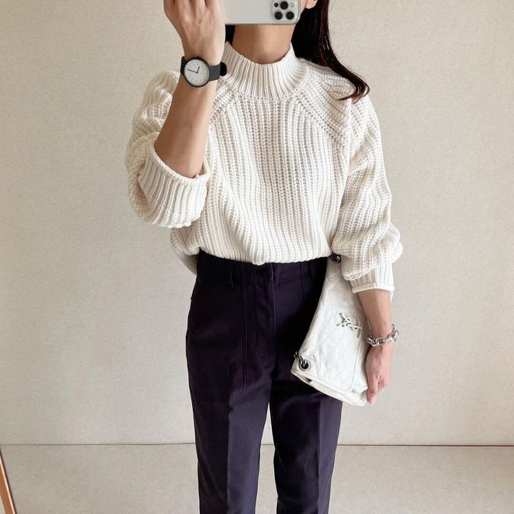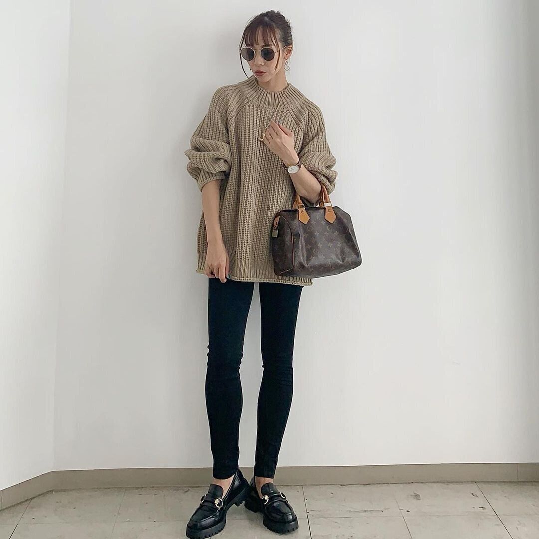 GUの「チャンキーニットハイネックセーター」を使ったおしゃれコーデを、インスタグラムからご紹介しました。