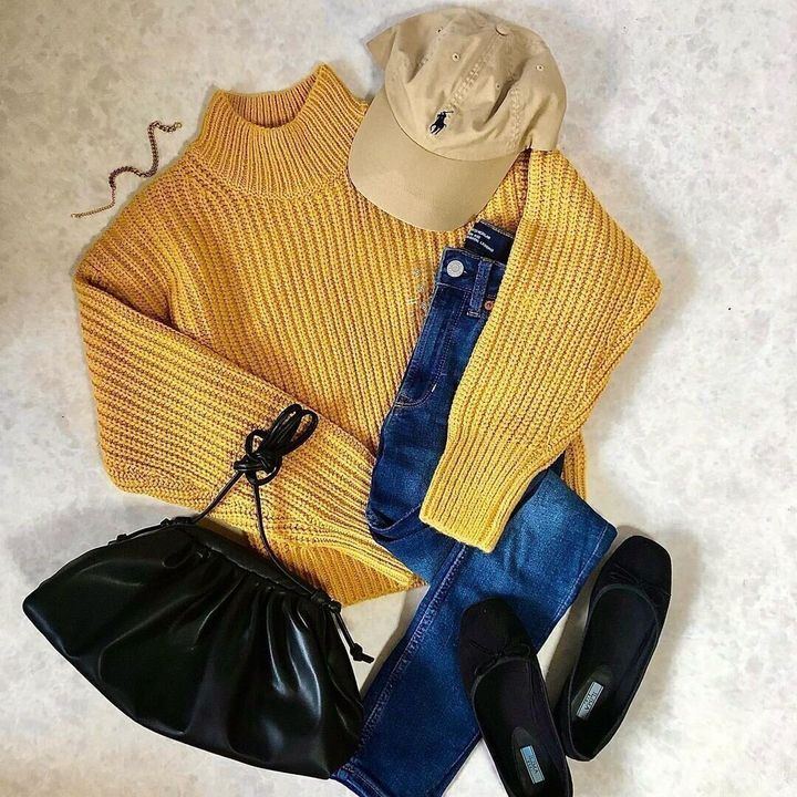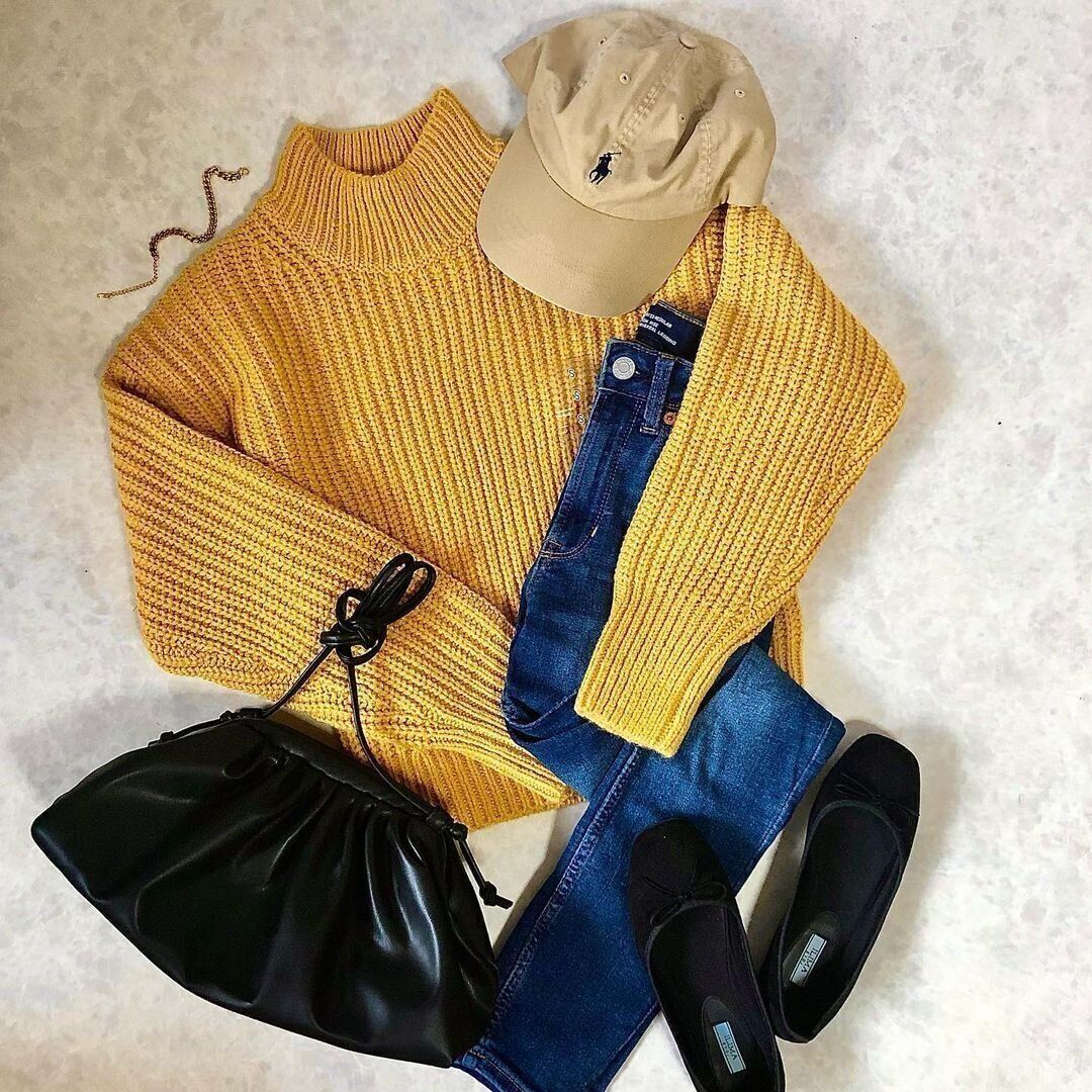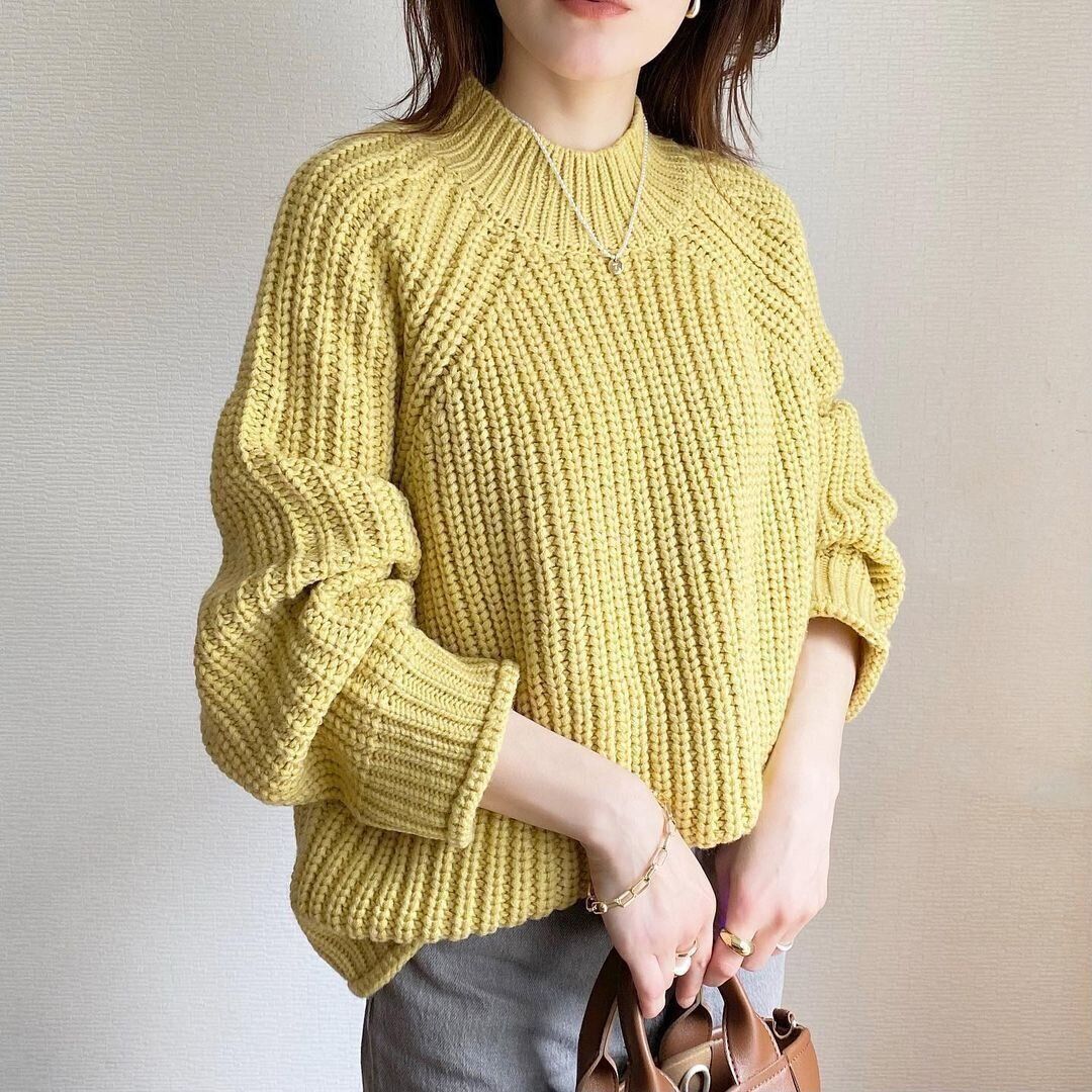 トレンドカラーのひとつでもあるイエローを、ざっくりニットで取り入れてみるのもおすすめですよ。