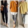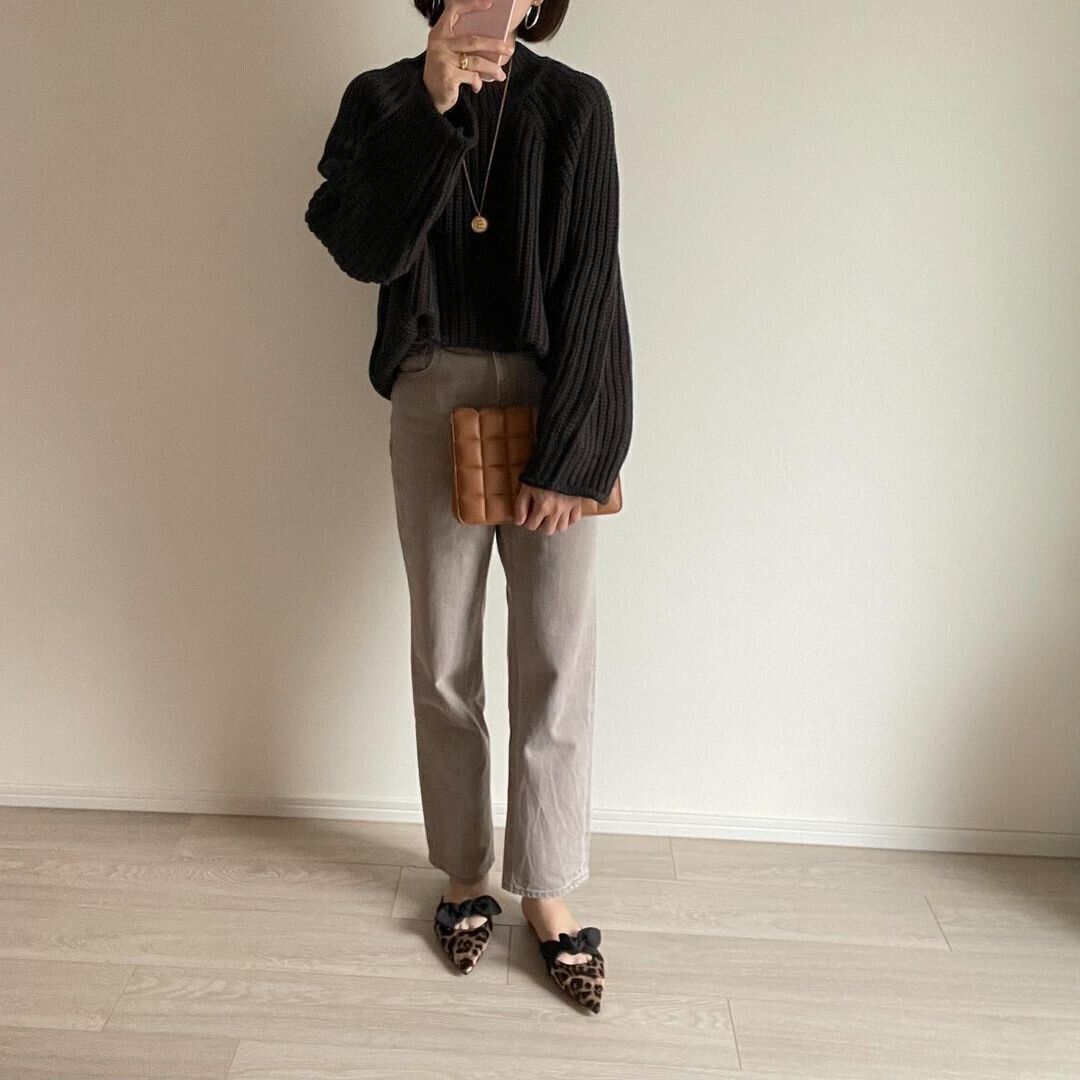 ユニクロの「ローゲージセーター(長袖)」(2,990円/2021年10月14日時点)を使ったコーデ。