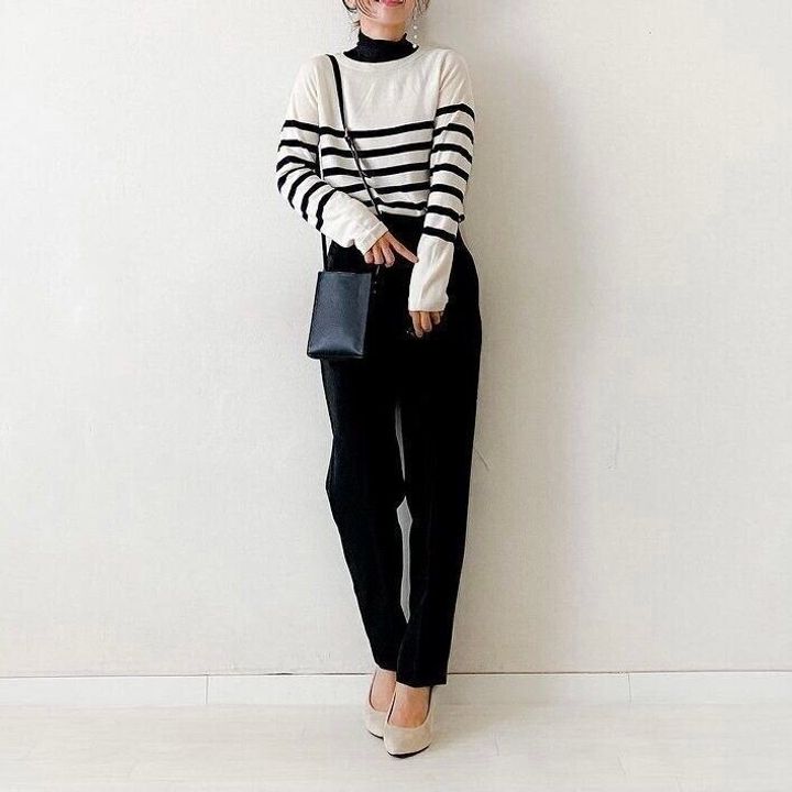 今っぽさを感じつつも、周りに浮かない、大人のための黒パンツコーデをご紹介いたします。