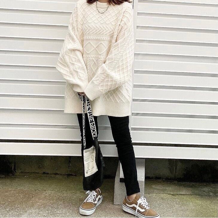 インフルエンサーコラボが話題になっているGeeRA(ジーラ) からニットをピックアップ。こちらは、着用されているmoyoさん自身のコラボニットです。複雑な編み目でニットコーデも表情豊かに!オーバーサイズなので、細身のパンツを合わせるのが好バランス。