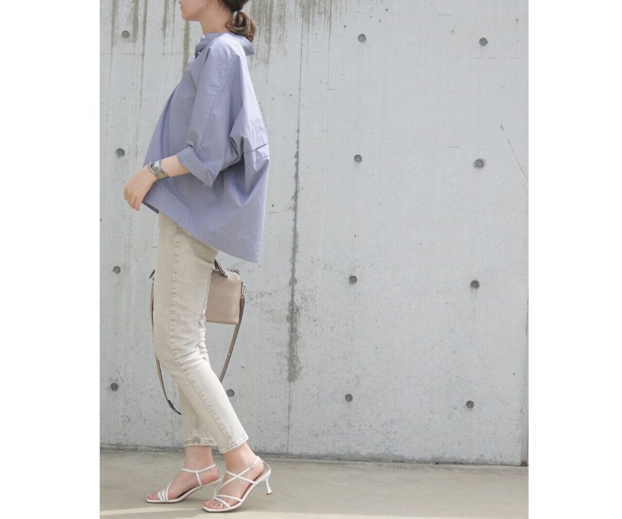 特徴はなんといってもこのジルサンダーらしい立体的なフォルムです。ゆったりとしたドルマンスリーブの7分袖。今回はコンパクトなデニムと合わせてスッキリとさせました。
