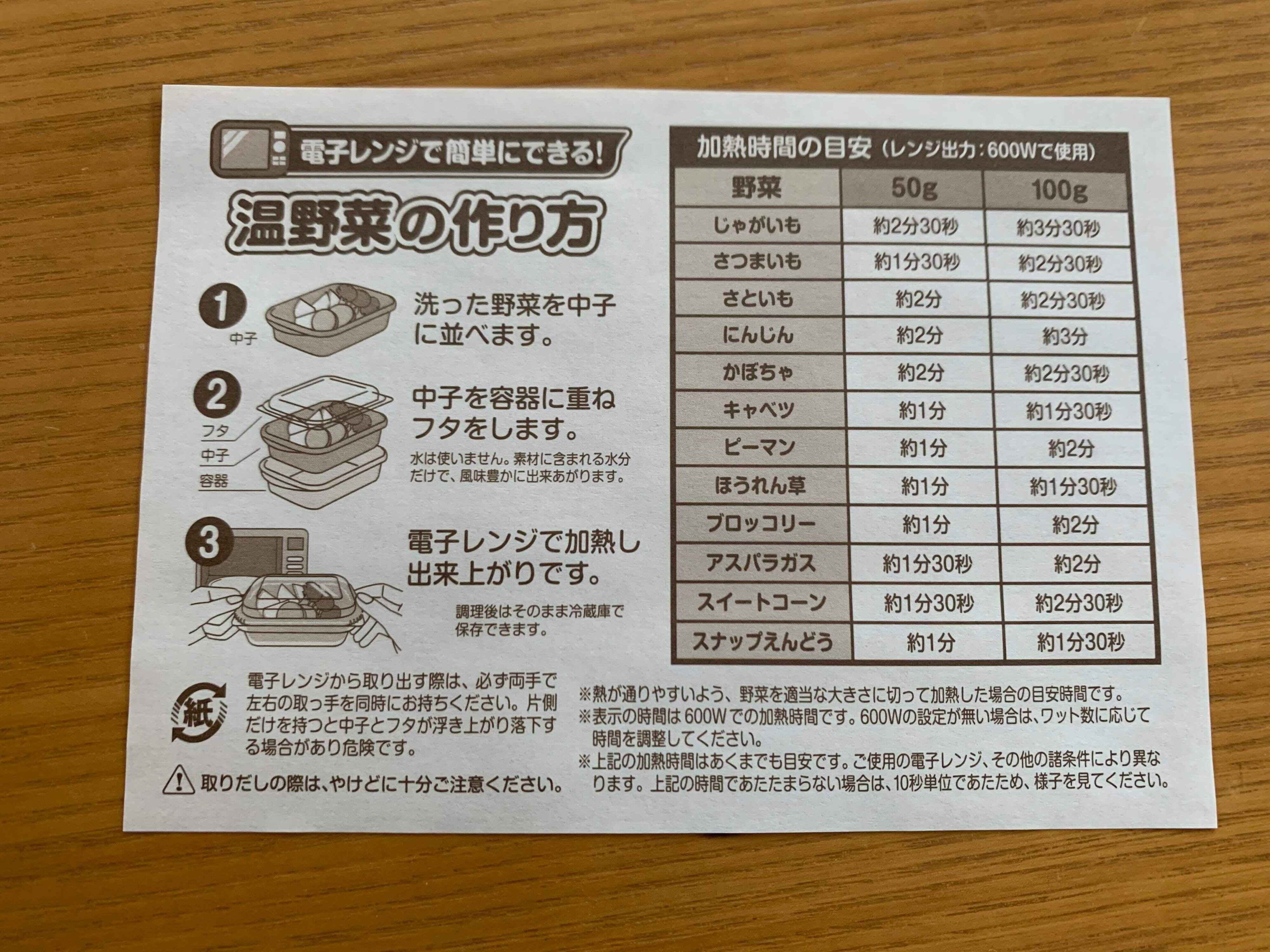 「電子レンジ対応温野菜メーカー」。330円。