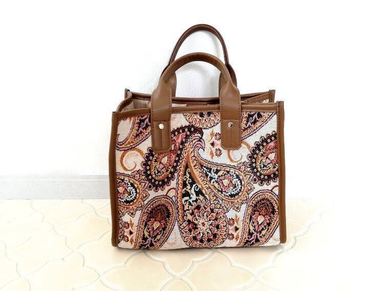 ゴブラン織りのようなペイズリー柄が素敵。合皮のパイピングがアクセントになってくれます。