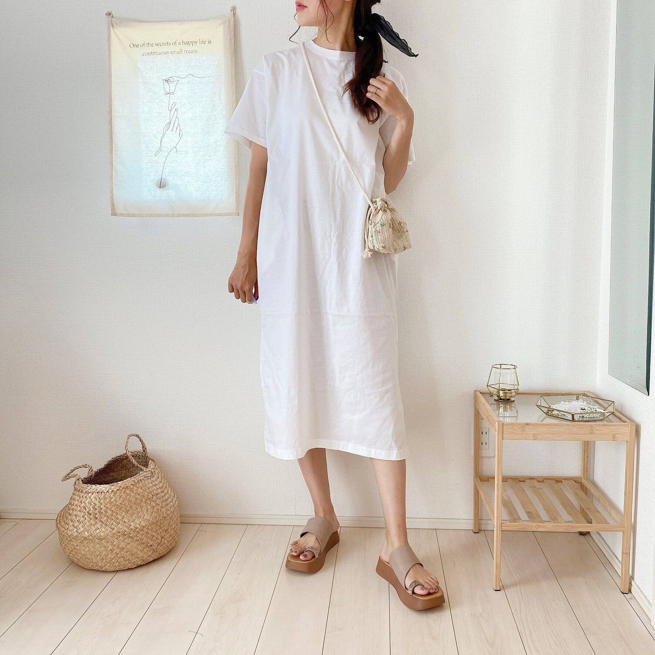 ユニクロで見つけたのは昨年も大人気だった「マーセライズコットンロングTワンピース」!しっかりとロング丈でシンプルなデザインですが、ゆったりとしたサイズ感で体型カバーも叶う優秀なワンピースなんです!1990円が1290円(2021年6月4日時点)にお値下げされていました。カラバリはホワイト、グレー、ブラック、イエロー、ブルーの5色展開です。