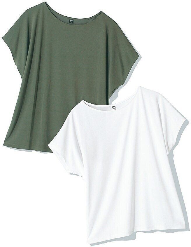 しなやかな素材感を生かしたシルエットがキレイ。1枚でも品よく着こなせる。「ドレープクルーネックT(半袖)」(ホワイト、オリーブ、ブラック、ピンク、ナチュラル、ブルー、ネイビー、ライトパープル・全8色)/ユニクロ