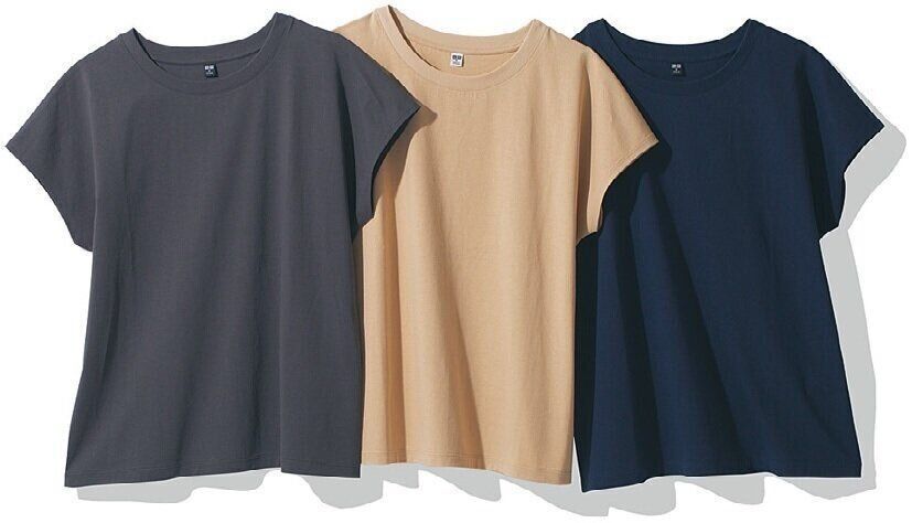 リラックス感のある形で、やや長めの着丈。さまざまなボトムに合わせやすい。「スムースコットンフレンチスリーブT (半袖)」(ネイビー、ベージュ、グレー、ホワイト、ブラック、ピンク、オレンジ、ブラウン、グリーン、ブルー・全10色)/ユニクロ
