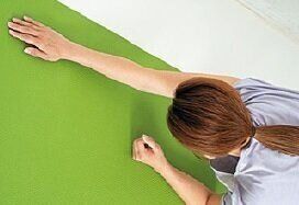 手を伸ばせる範囲で前に出して。反対側の延長線上まで届かなくてもOK。