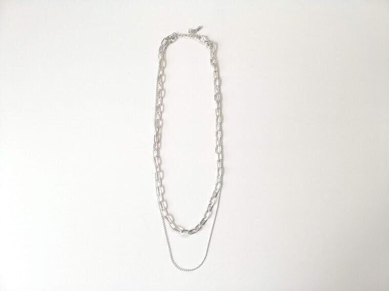 太さの違うチェーンを2つ重ねたネックレス。取り外し可能な2WAY仕様で、気分に合わせて「重ねづけ」「太いほうを1本で」「細いほうを1本で」と、2WAYどころか3WAYで使えちゃいます!