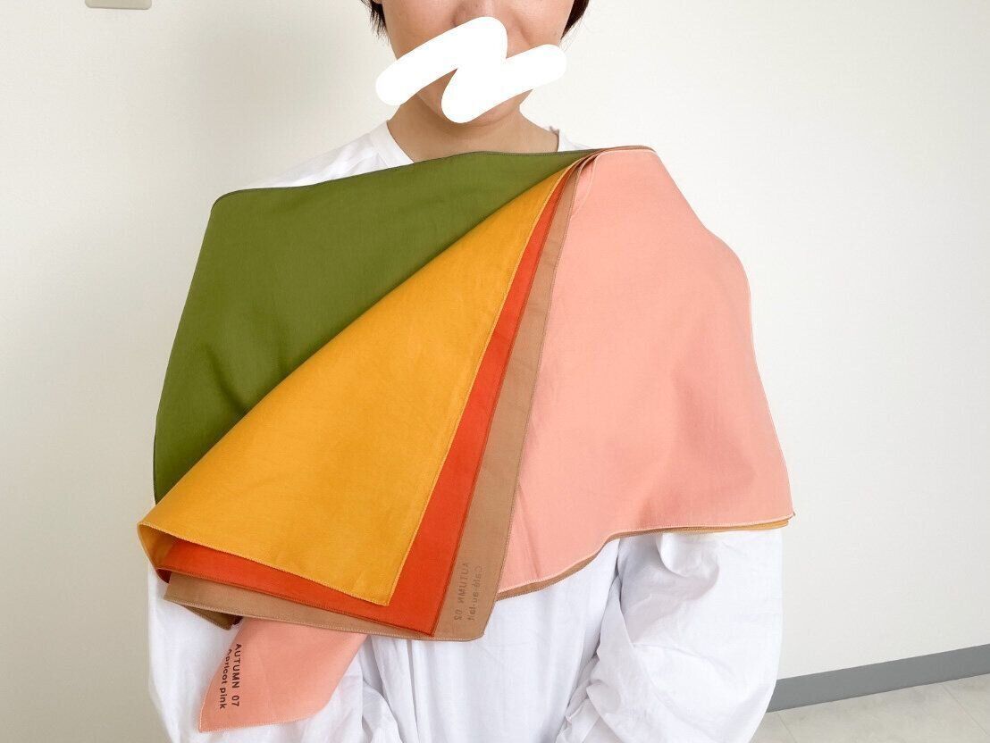 メイクをしたあとに、改めてベストカラーを診断!筆者のベストカラーは、モスグリーン・マスタードイエロー・ディープオレンジなど、AUTUMNの中でも穏やかでソフトな色味が似合うことが分かりました。