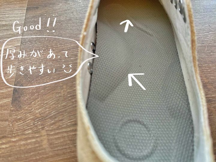 ぜひ実際に履いてみてほしいのですが、土踏まずに当たる部分がすごく気持ち良いんです。この気持ち良さを知ってしまったら、もう他のスニーカーは履けません……!
