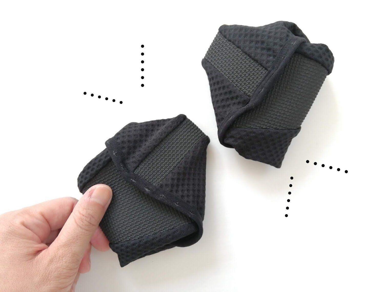 くにゃっと柔らかく、かかと部分を折り込めばコンパクトにまとめることができます。