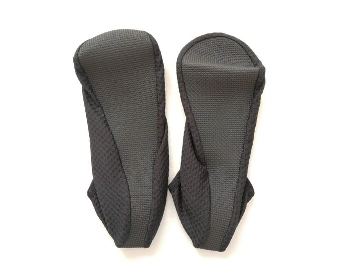 靴のような形で、柔らかな素材。ぽこぽこした表面感で、オールブラックの見た目がスタイリッシュ。