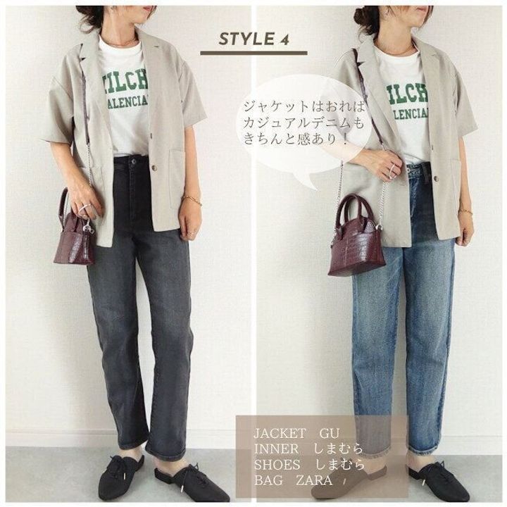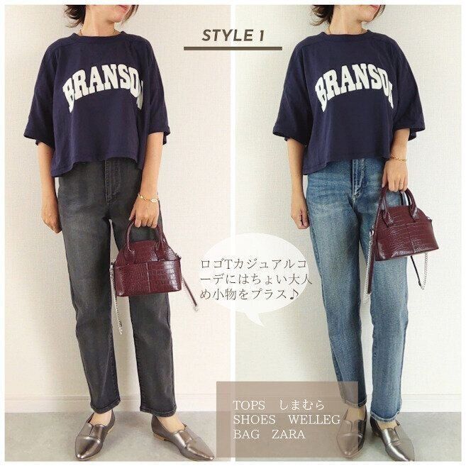デニム×ロゴTのカジュアルコーデ。アラフォーの私が着る場合は少し大人めな小物を取り入れます