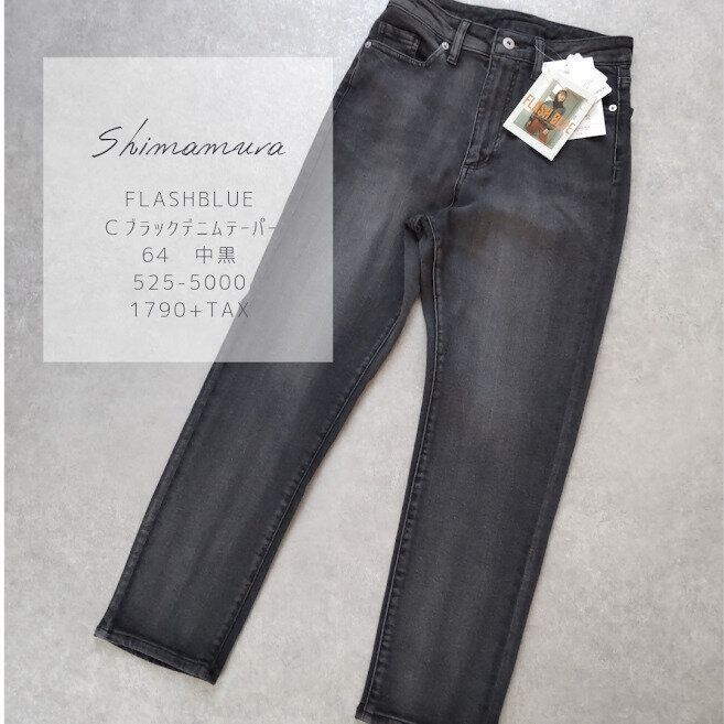 秋におすすめなブラックデニム。脚長みえなテーパードシルエットで伸縮性も抜群!