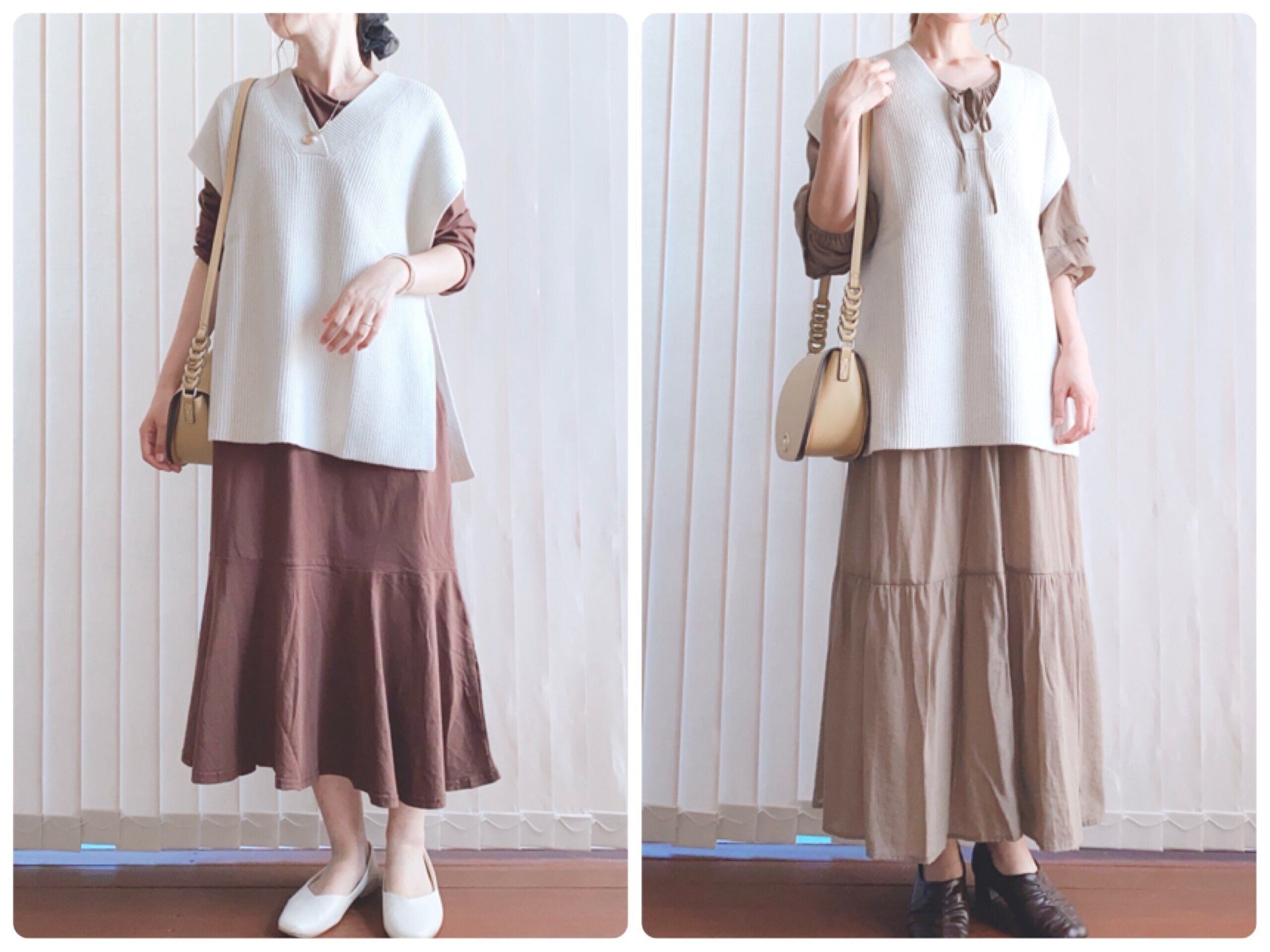 この秋は沢山のベストが出ているので、どれを買うか迷ったら、どんなアイテムにも合わせやすいこちらのベストを一度手に取ってみてくださいね。