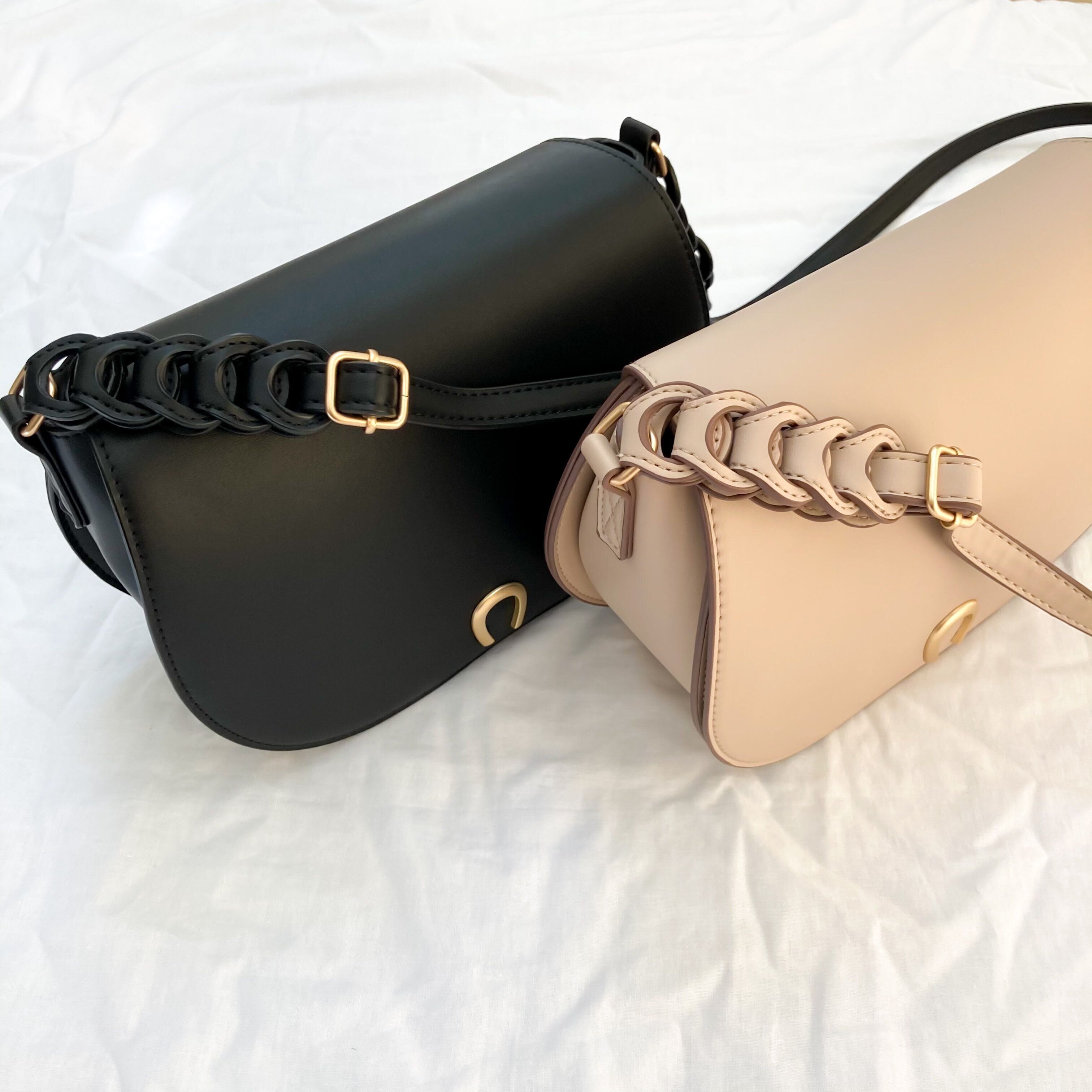 ショルダーベルトの一部が、チェーンのようなデザインになっているのも高見えポイント!一癖あってとても可愛いです。長さ調整可能なバックル付きなので使い勝手も良いです。