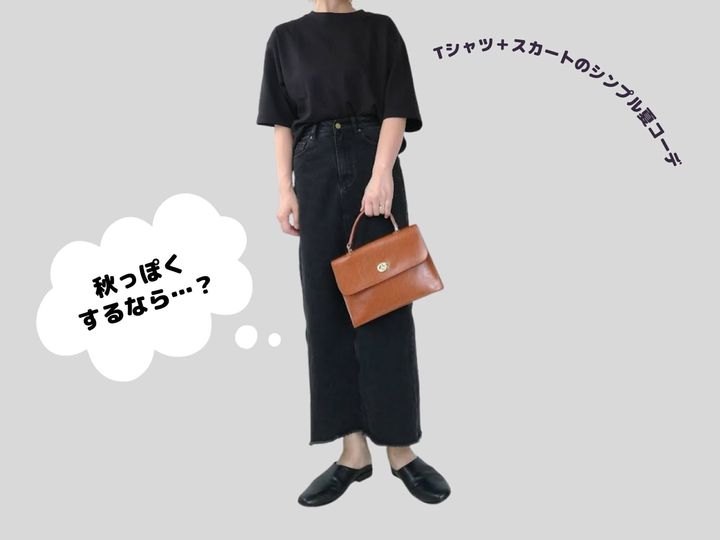 Tシャツ&スカートのシンプル夏コーデ。秋を先取りしたい晩夏に、ニットベストがまさにうってつけなんです!