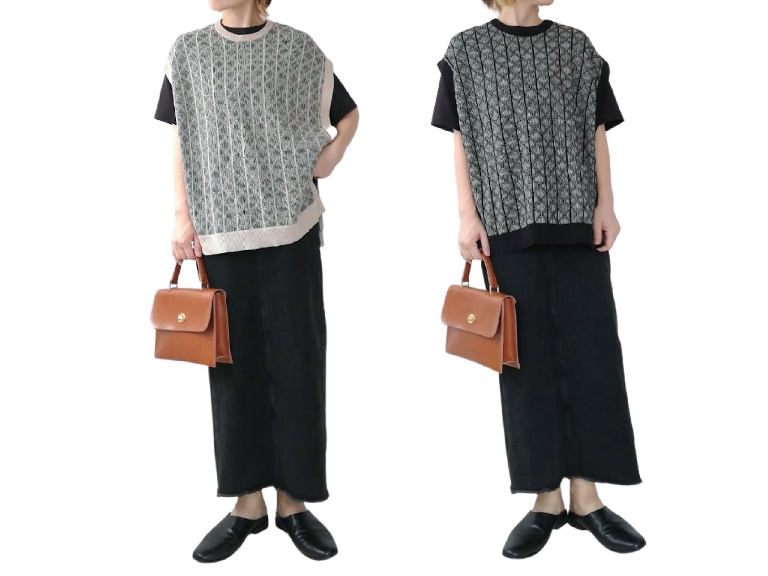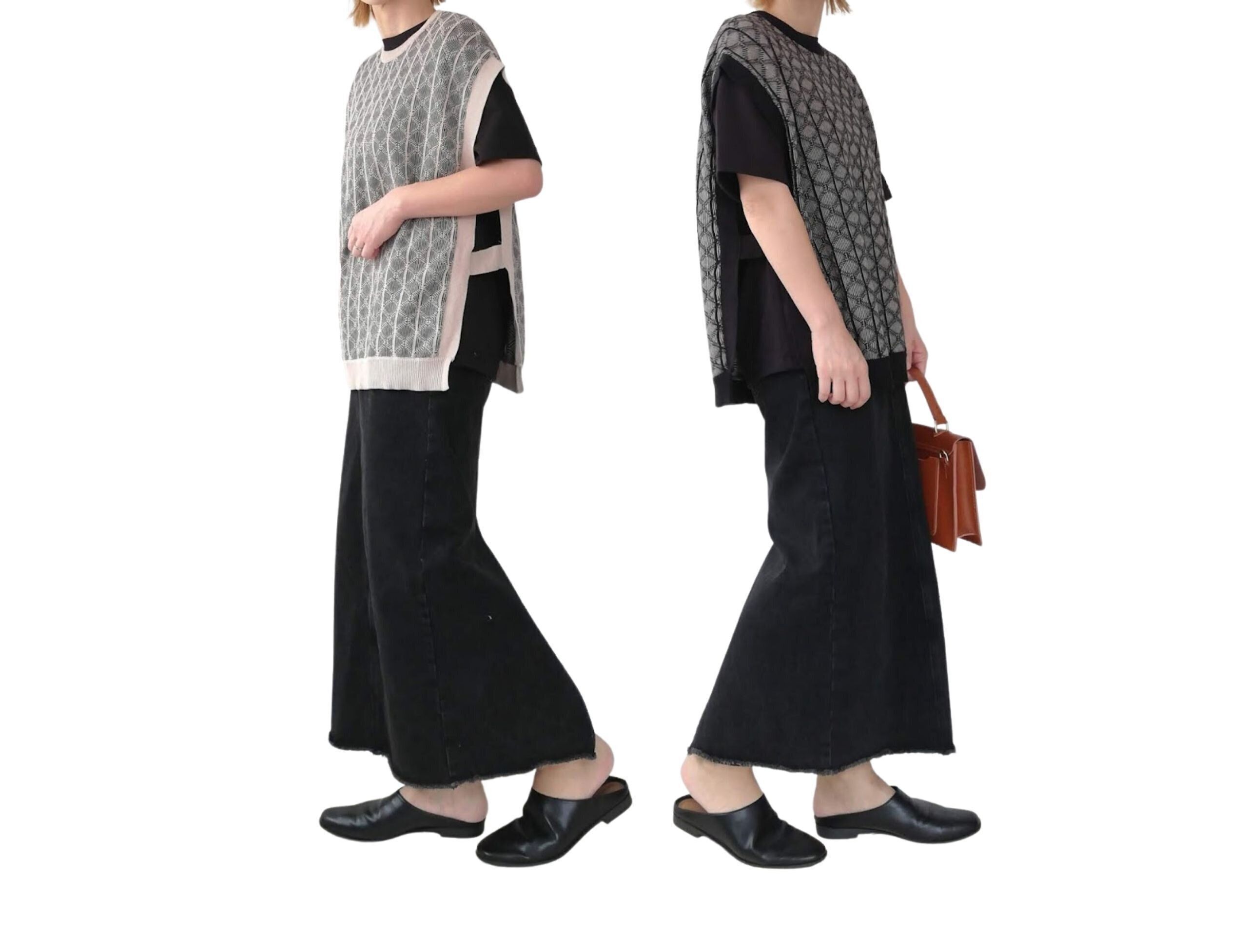 薄手のニットなので、さらりと軽い着ごこち。半袖+ベストは、秋先取りコーデにぴったりなんです。